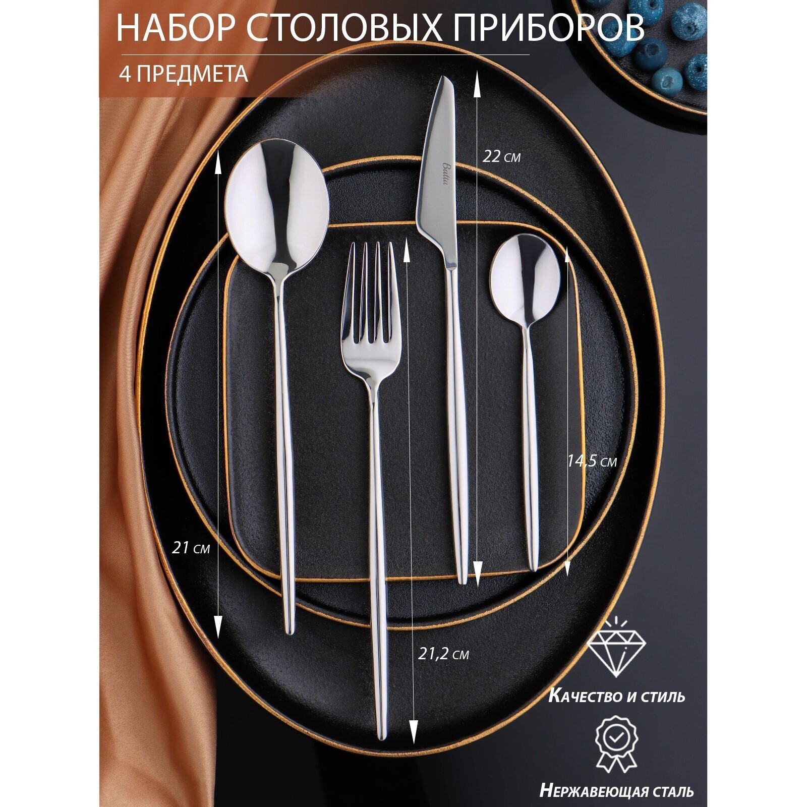 Набор столовых приборов «Торнбери», 4 предмета, цвет серебряный