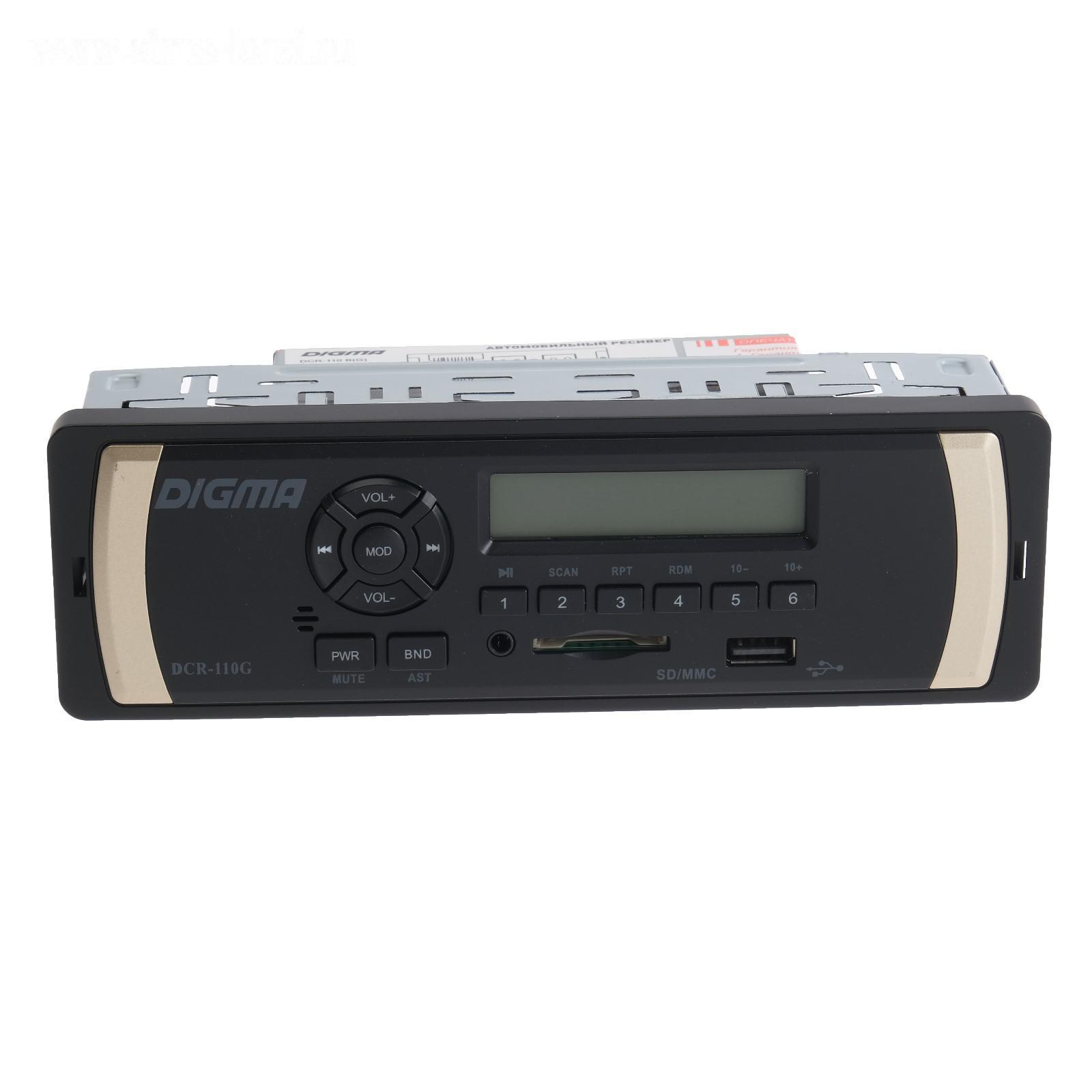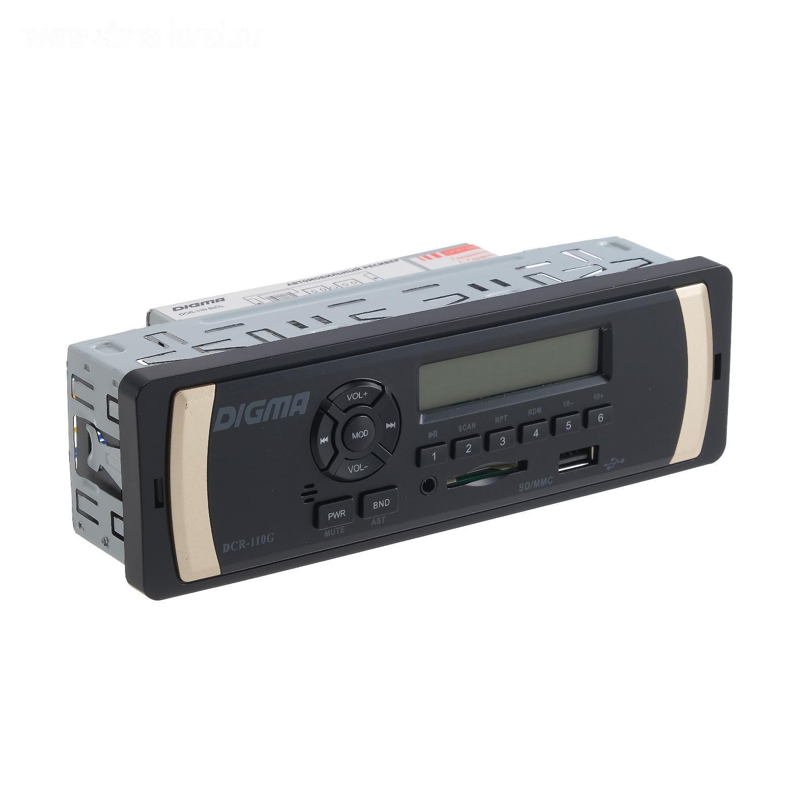 Автомагнитола DIGMA DCR-110G дает возможность сделать поездку более комфортной за счет прослушивания любимых передач и аудиокомпозиций. Модель имеет элегантный корпус из черного пластика, который дополнен монохромным дисплеем.