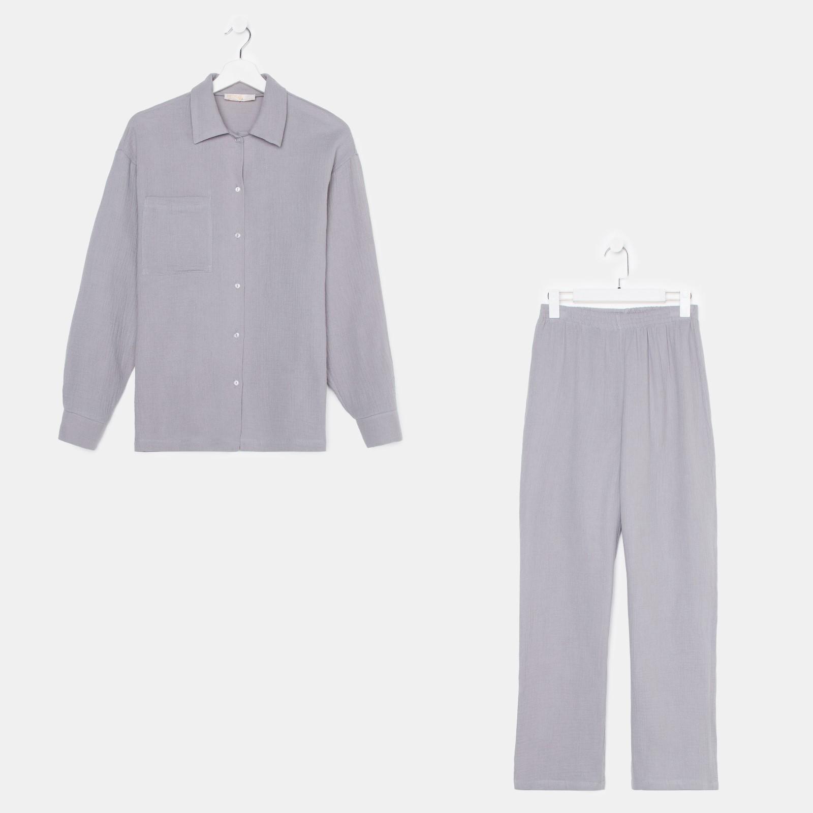 Пижама женская (рубашка и брюки) KAFTAN "Basic" размер 44-46, цвет серый
