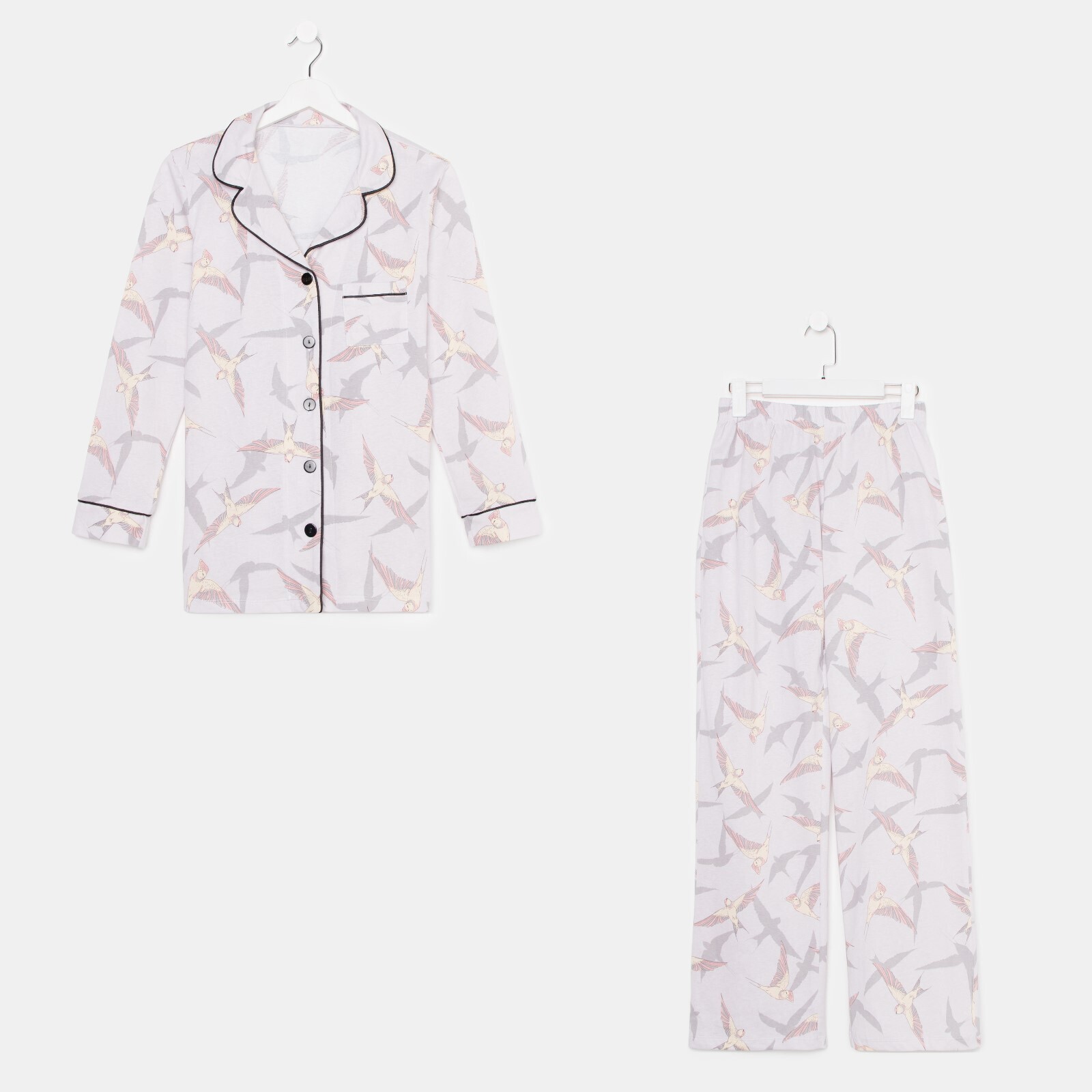 Пижама женская (рубашка и брюки) KAFTAN Birds размер 40-42, серый