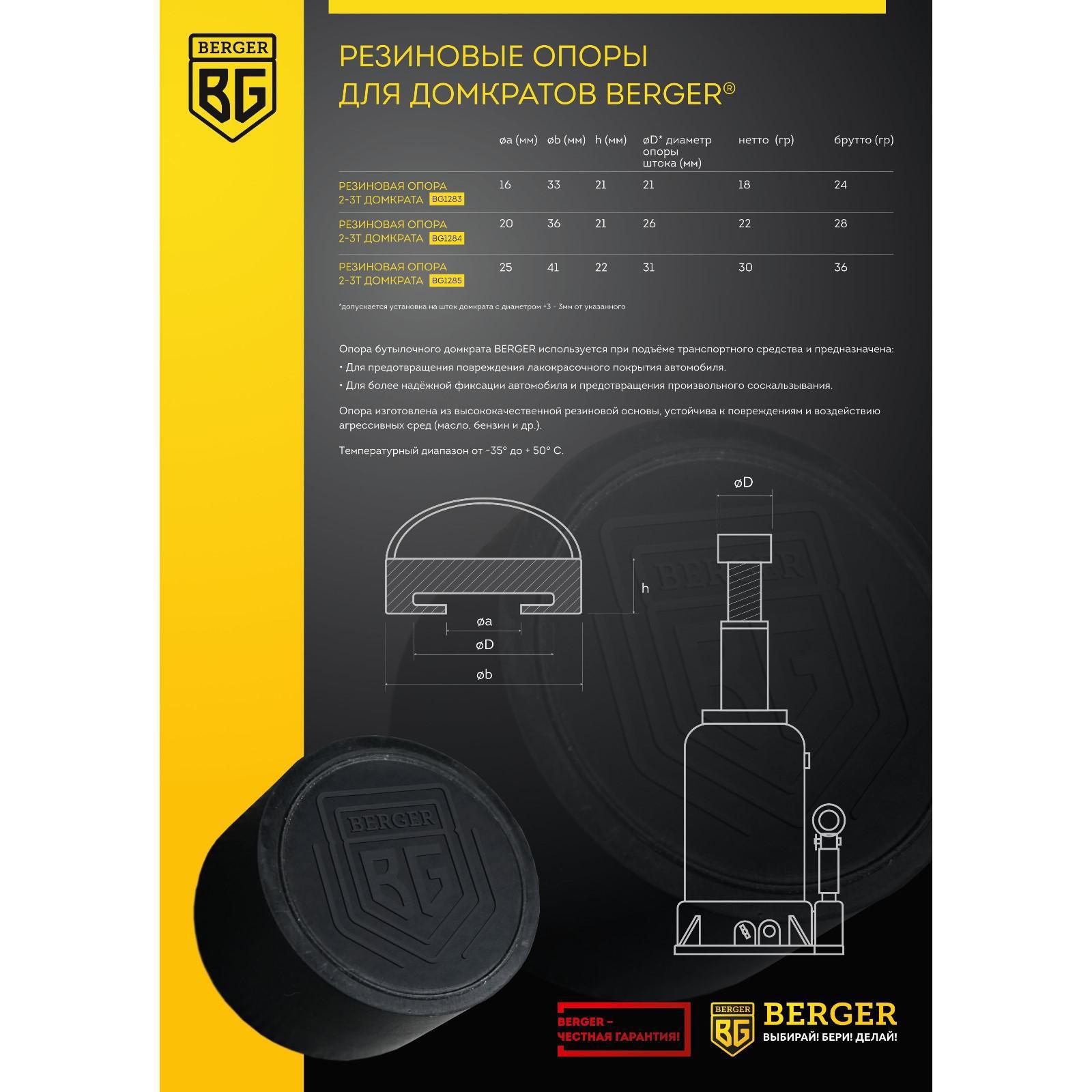Резиновая опора BERGER BG1285, для бутылочного домкрата, d-31 мм, внешний d-41 мм, 6-8 т