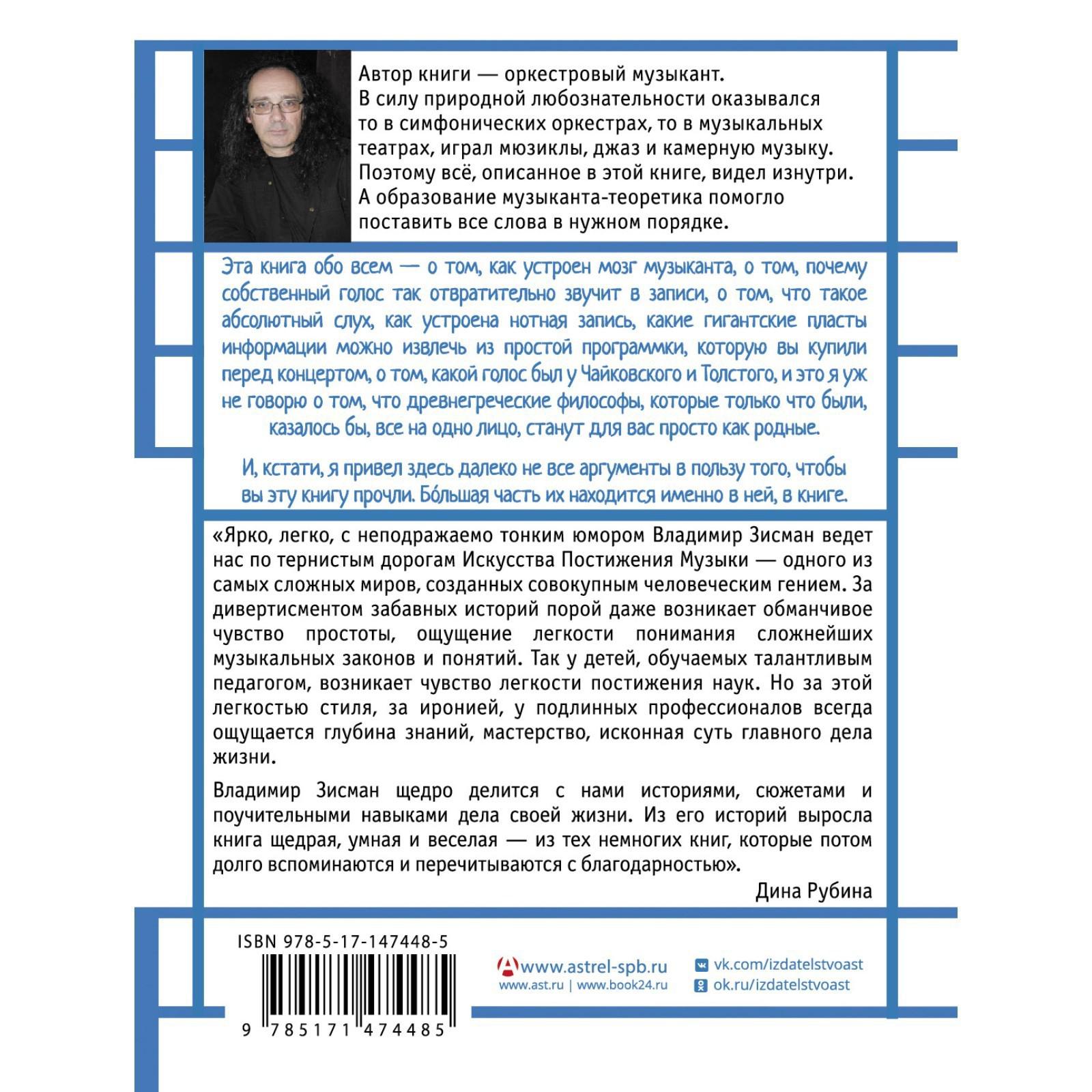 Эта книга обо всем — о том, как устроен мозг музыканта, о том, почему собственный голос так отвратительно звучит в записи, о том, что такое абсолютный слух, как устроена нотная запись, какие гигантские пласты информации можно извлечь из простой программки, которую вы купили перед концертом, о том, какой голос был у Чайковского и Толстого, и это я уж не говорю о том, что древнегреческие философы, которые только что были, казалось бы, все на одно лицо, станут для вас просто как родные.