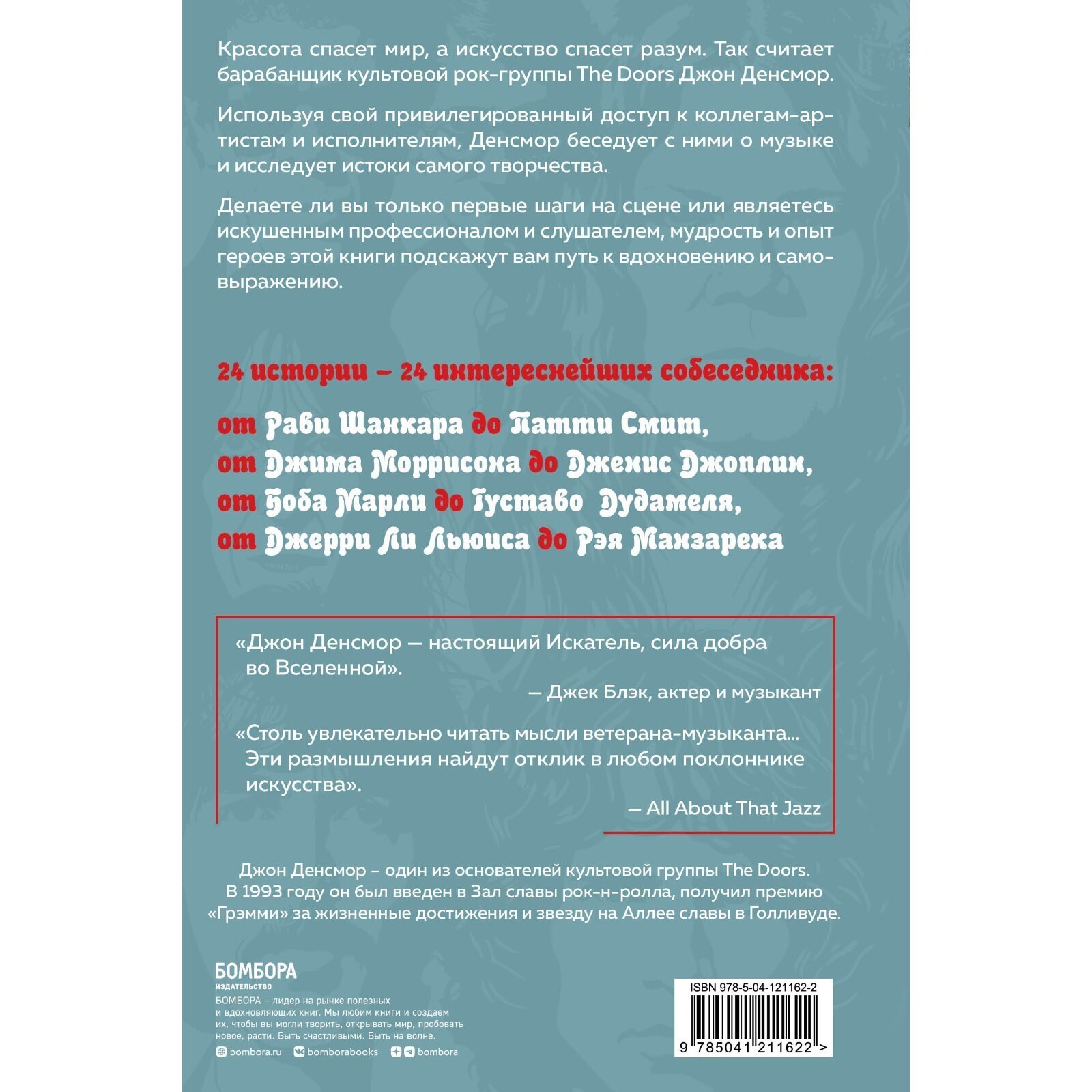 Книга культового барабанщика The Doors рассказывает ожизни выдающихся деятелей искусства запределами сцены. Вдохновлённый книгой Георгия Гурджиева «Встречи сзамечательными людьми», Джон Денсмор собрал свою группу творцов, именуемых мастерами вмузыке, скоторыми онпровел время заувлекательными беседами. Каждый изних получил свой мистический опыт через искусство иготов поделиться имсчитателями: отРави Шанкара доПатти Смит, отДжима Моррисона доДженис Джоплин, отБоба Марли доГуставо Дудамеля, отДжерри ЛиЛьюиса доРэя Манзарека.