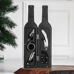 Набор станет отличным презентом для истинных ценителей вина. Идеальное сочетание необходимых приспособлений и необычный дизайн, отлично подойдет в качестве подарка к особенным торжествам или по другому поводу.