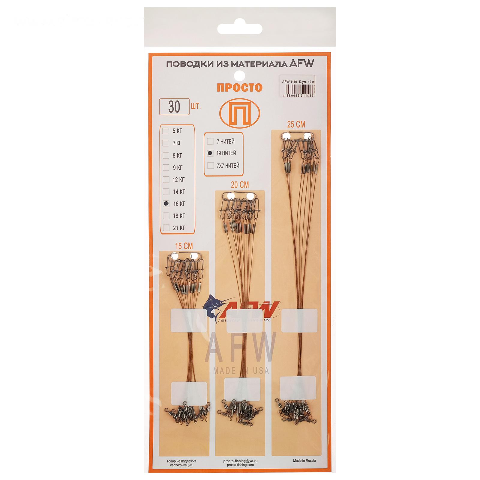 Набор поводков AFW 1 × 19 нитей, 0,36 мм/16 кг, 15-20-25 см, 30 шт.