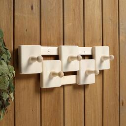 Баня, как и театр, начинается с вешалки. Повесьте изделие у входа полку, чтобы все было на своих местах. Прочные крючки могут выдержать большую нагрузку. Легко крепиться к стене гвоздями или саморезами.