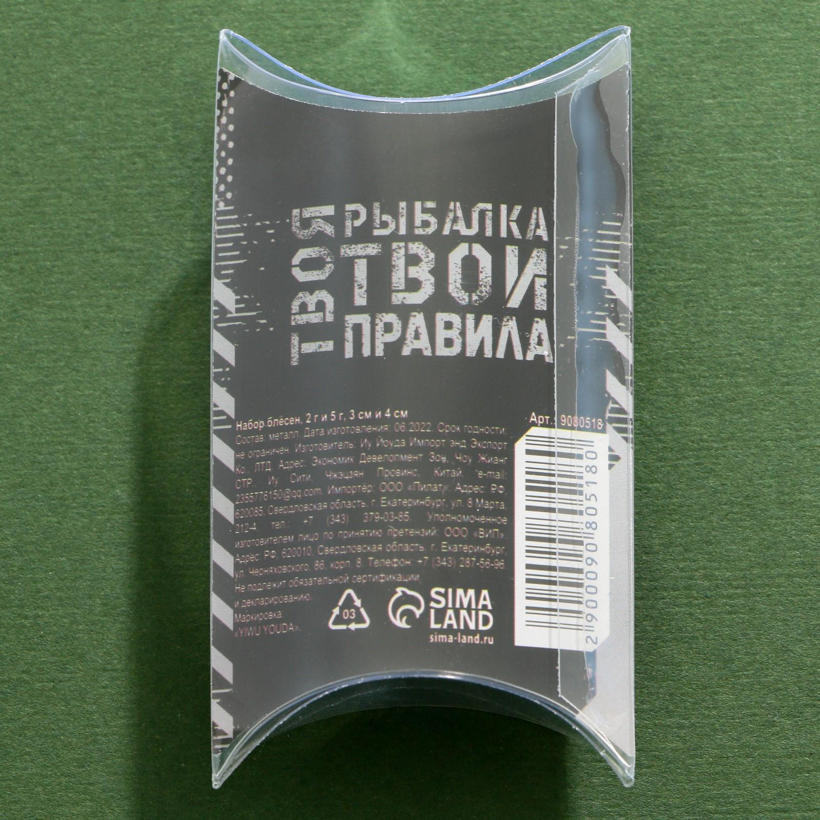 Набор блесен колеблющихся"Твоя рыбалка, твои правила", 2 гр и 5 гр, 3 см и 4 см