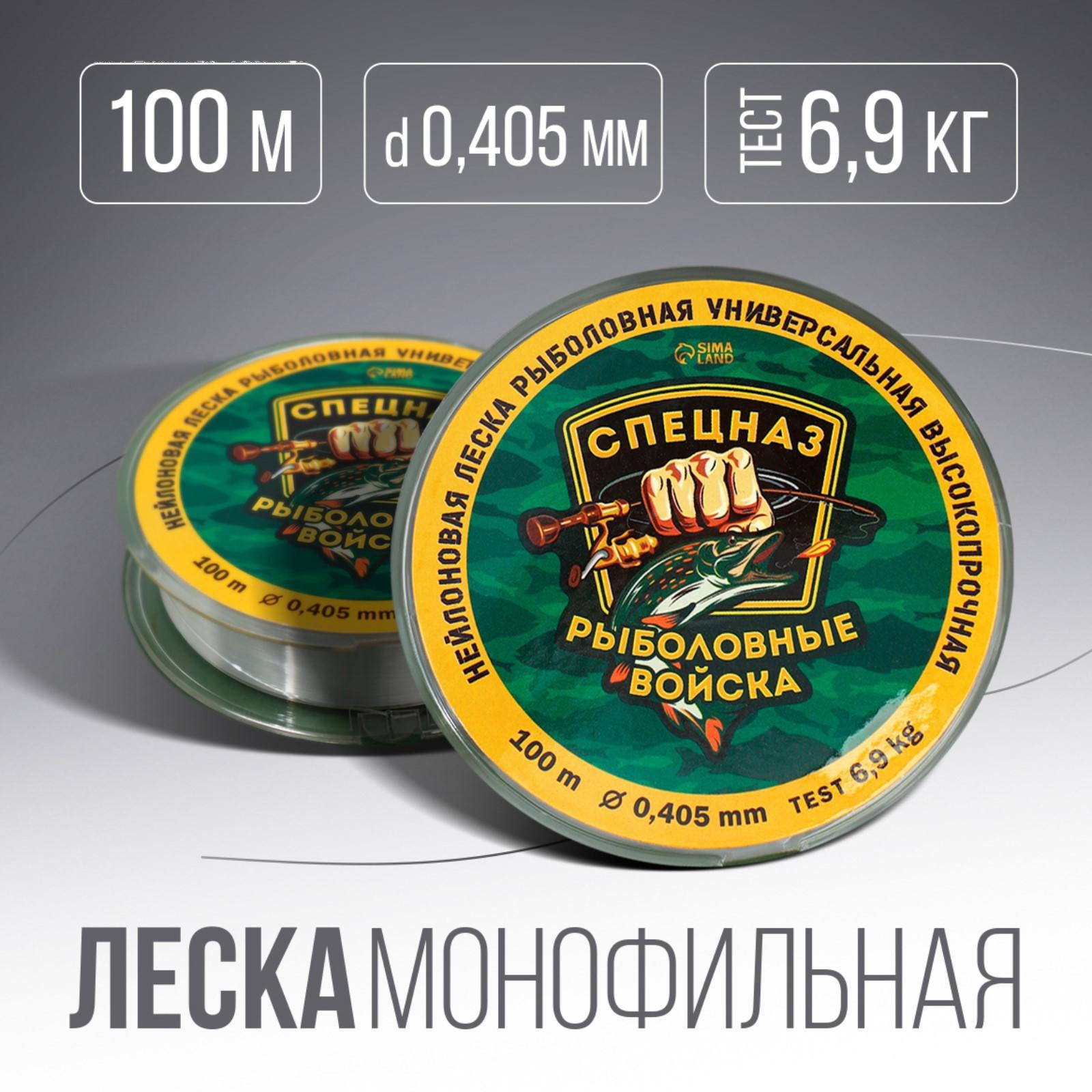 Монофильная леска "Рыболовные войска", 100 м, d=0,405 мм, разрывной вес - 6,9 кг, прозрачная 90965