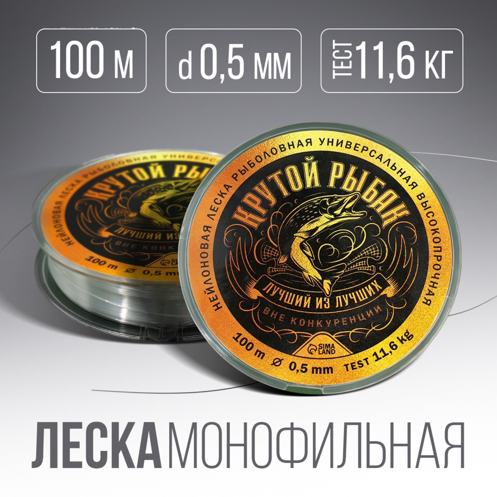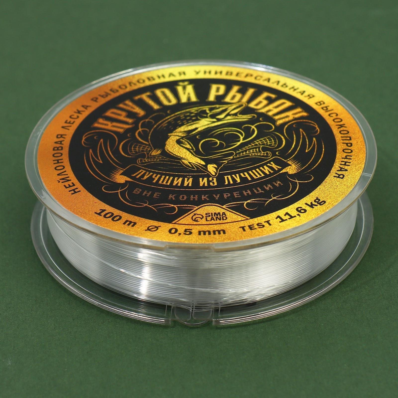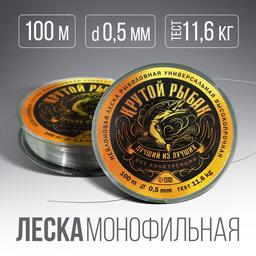 Монофильная леска "Крутой рыбак", 100 м, d=0,5 мм, разрывной вес -11,6 кг, прозрачная