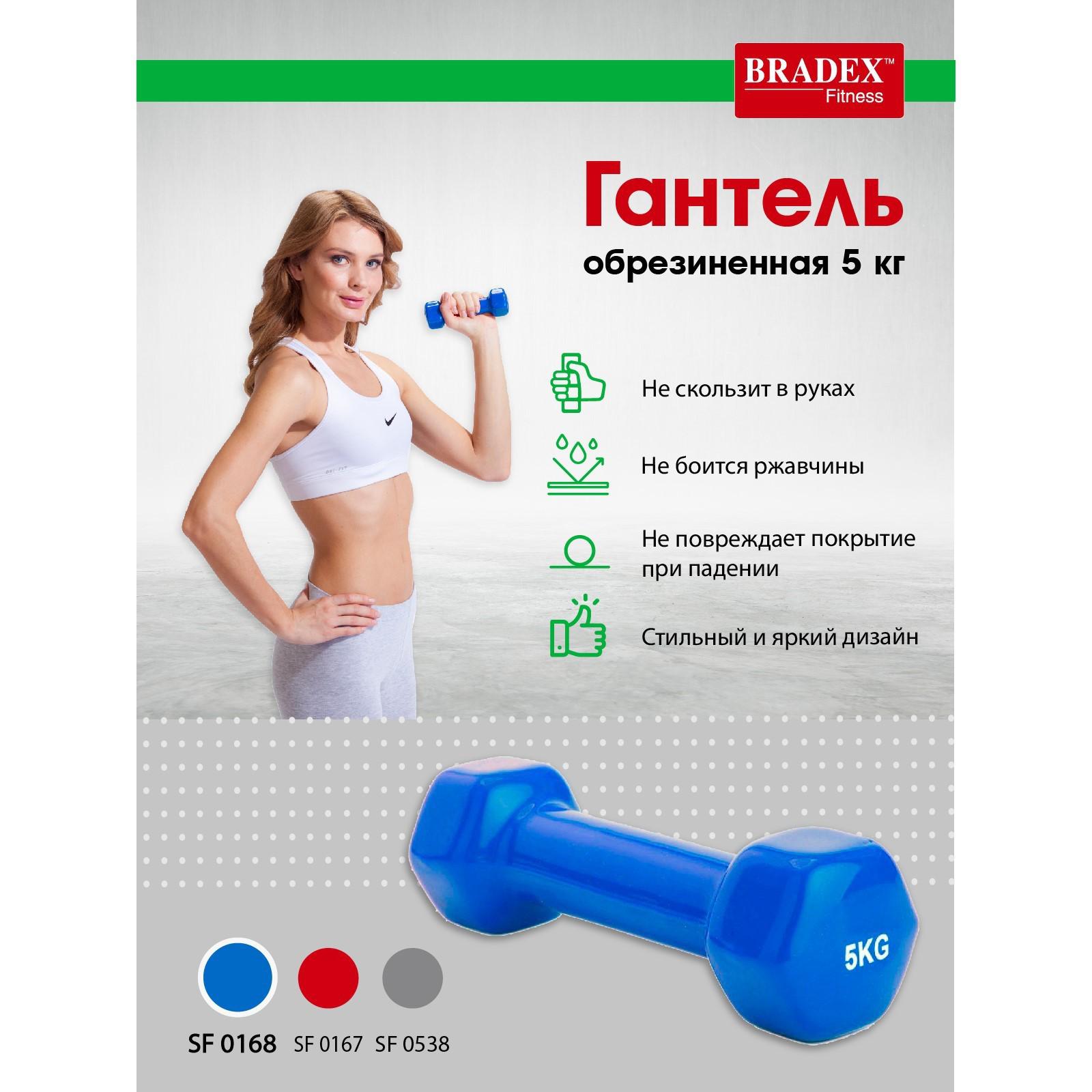Гантель обрезиненная Bradex SF 0168, синяя, 5 кг