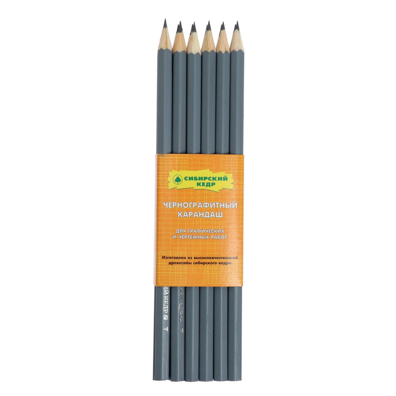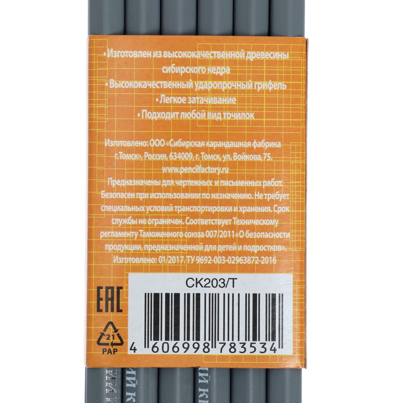Карандаш чернографитный (простой) Н, Сибирский кедр "Русский", заточенный, дерево, шестигранный, серый
