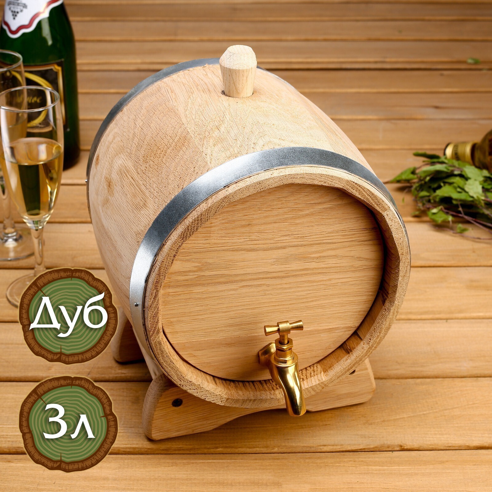 Бочка дубовая на подставке, 3л, кавказский дуб, кран из латуни