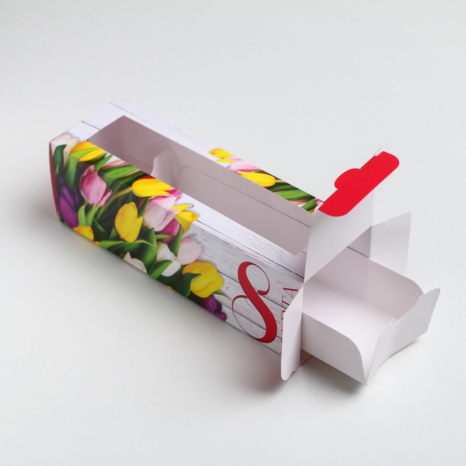 Коробка для макарун «Букет тюльпанов», 5.5 × 18 × 5.5 см