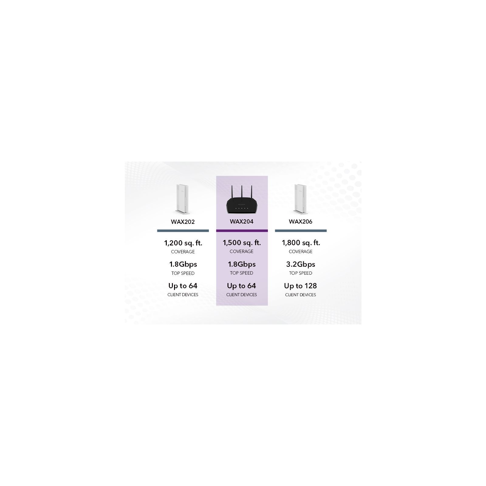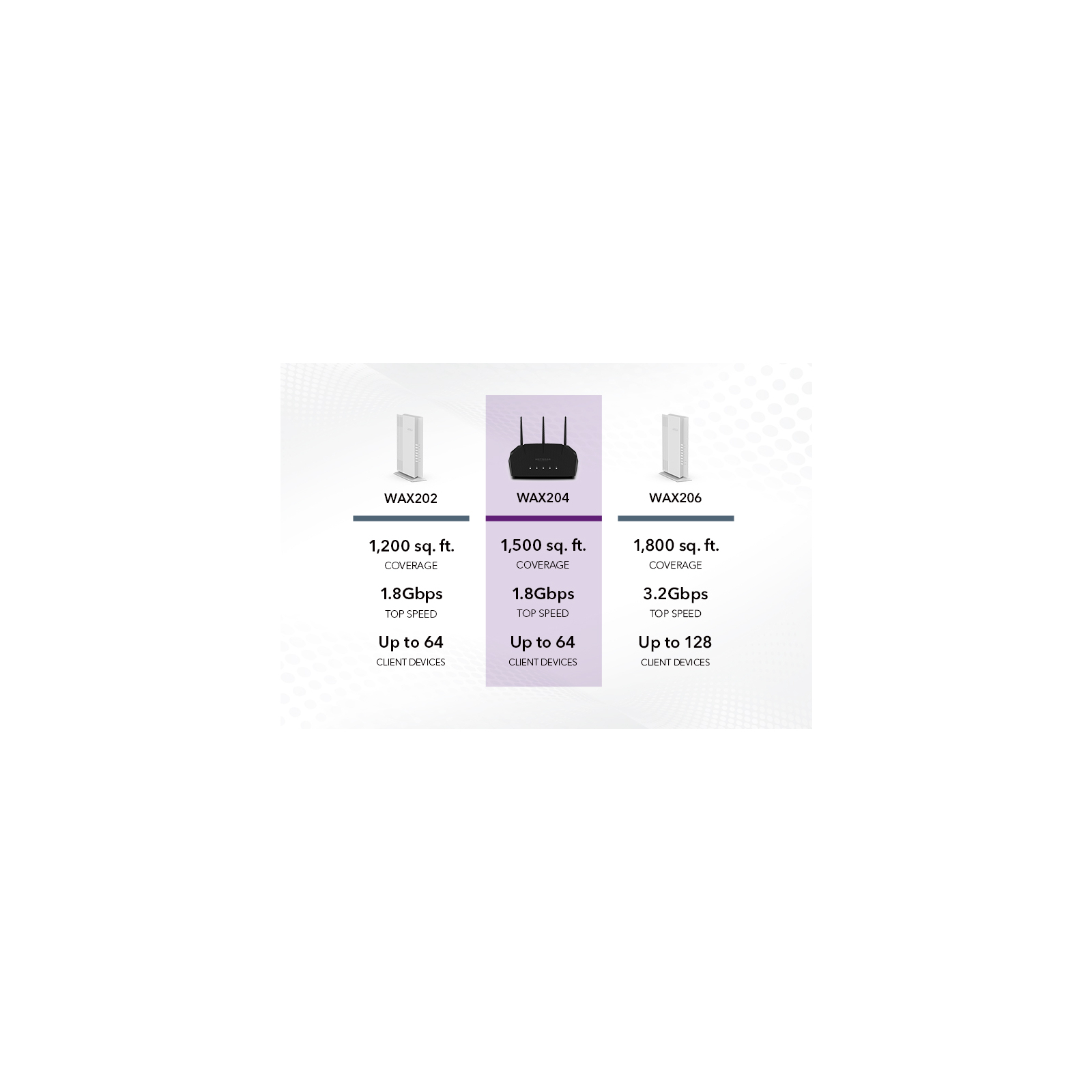 Дводіапазонна точка доступу NETGEAR WAX204 WiFi 6 AX1800 стане універсальним рішенням для домашнього офісу і малого бізнесу. Підвищіть продуктивність за допомогою швидкого і надійного WiFi 6.