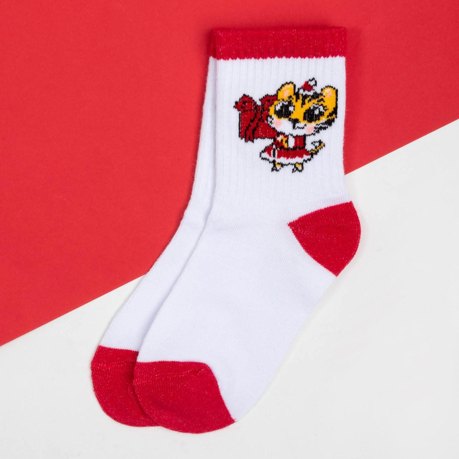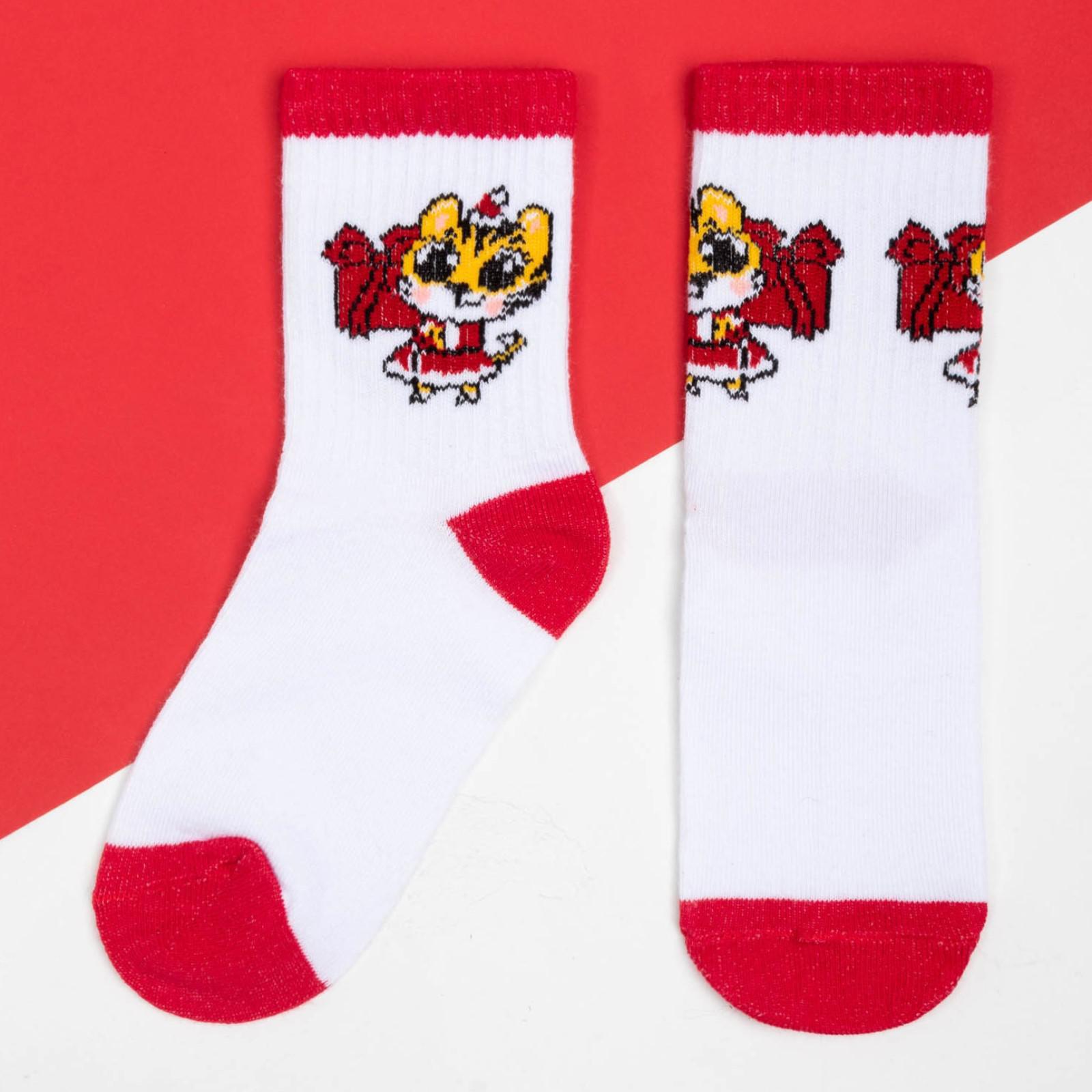 Носки новогодние детские "Тигр" р-р 18-20, белый