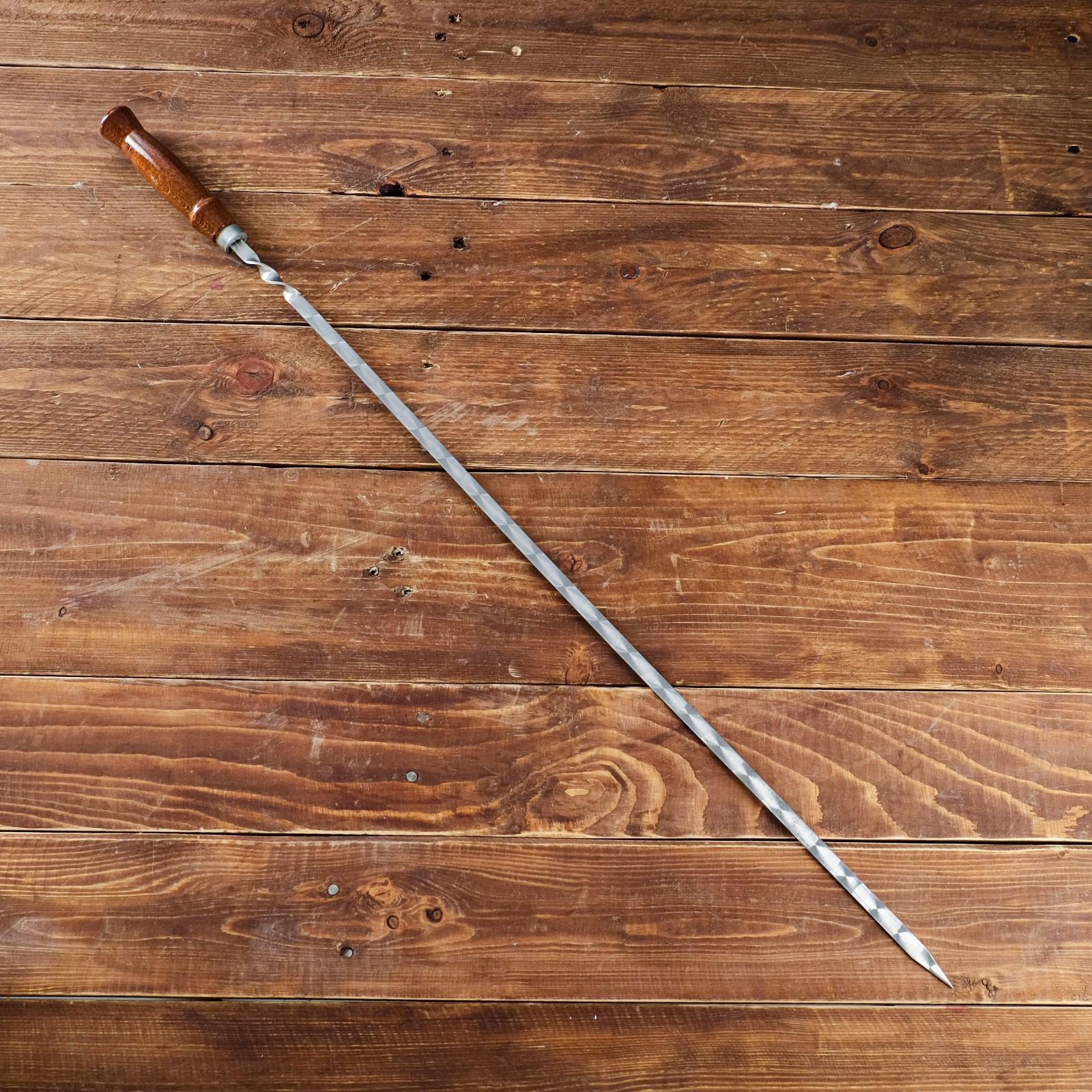 Шампур узбекский 79см, деревянная ручка, (рабочая часть 60см,сталь 2мм), с узором