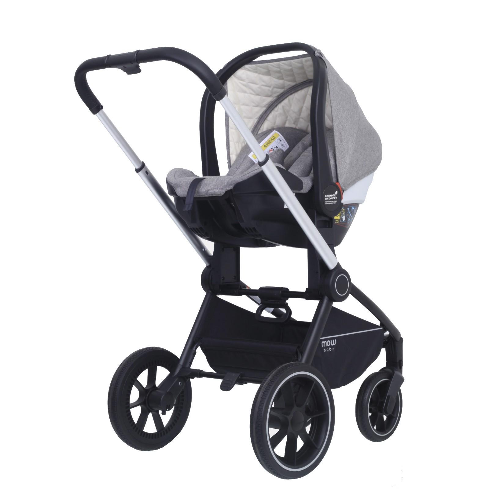 Коляска детская MowBaby Zoom PU, 3в1, цвет золотой/бежевый