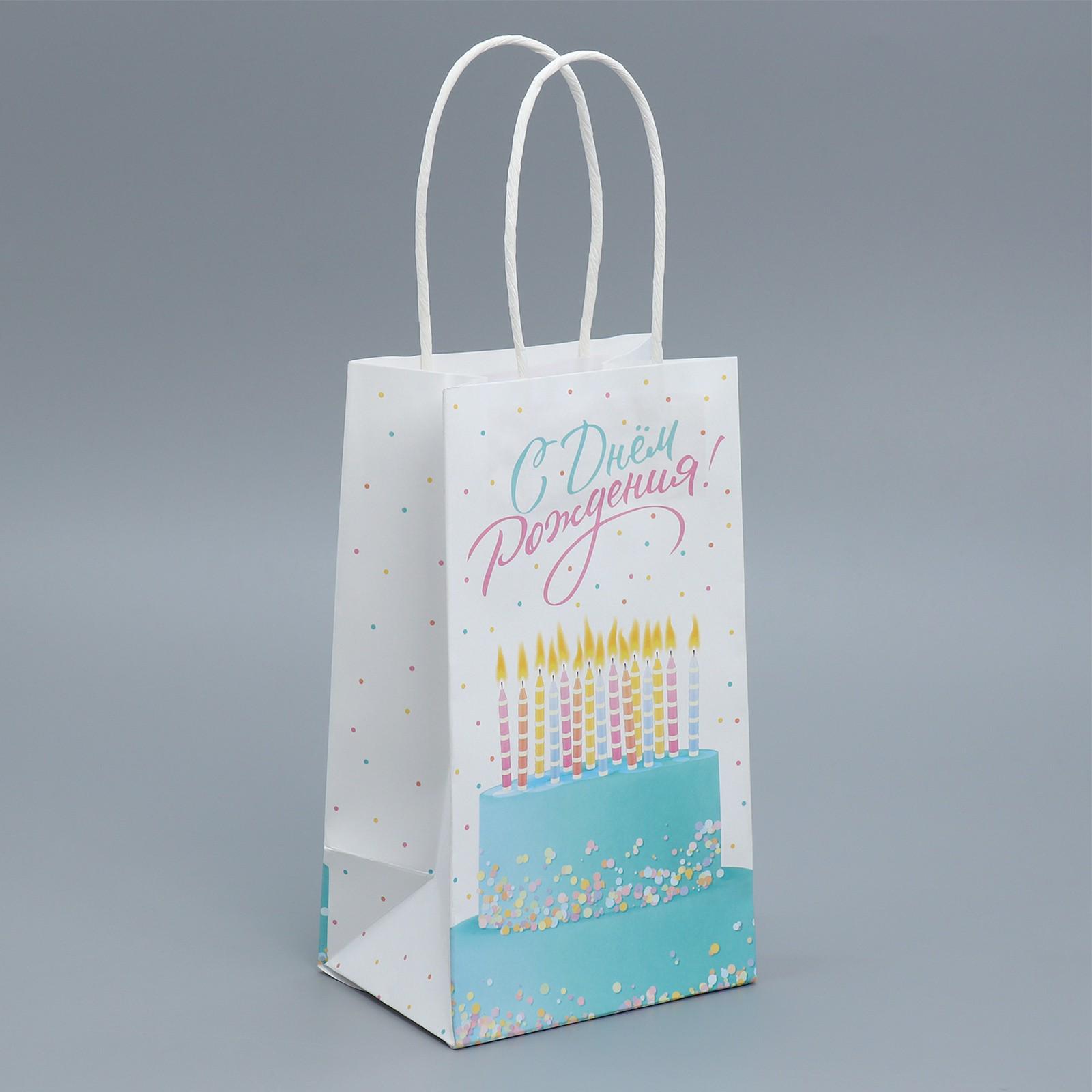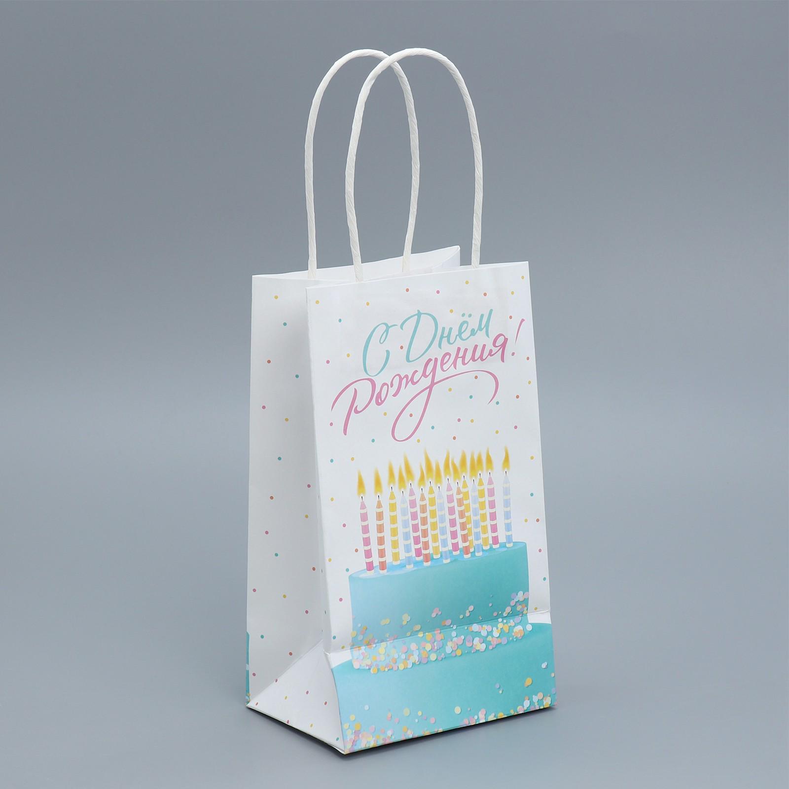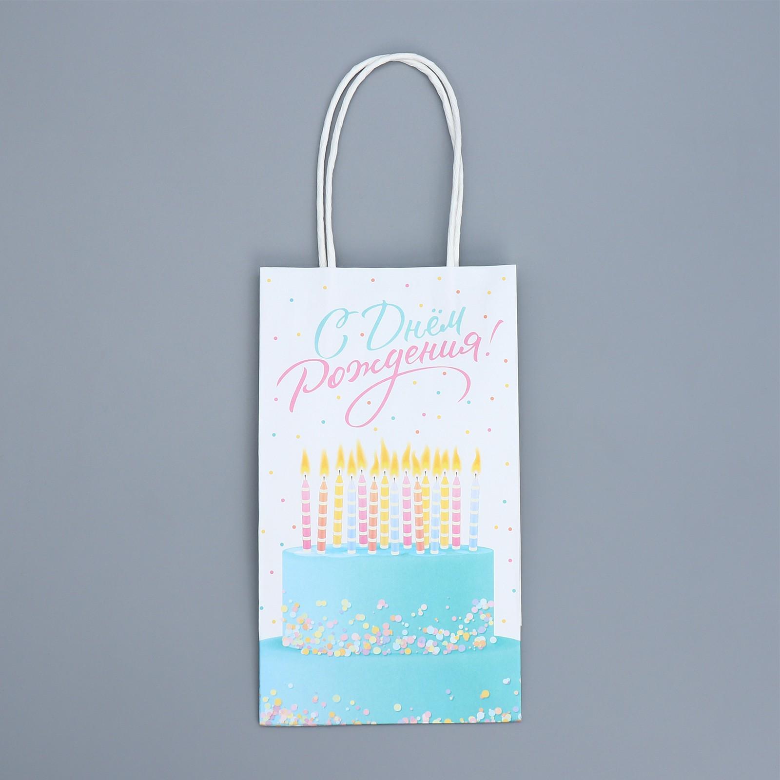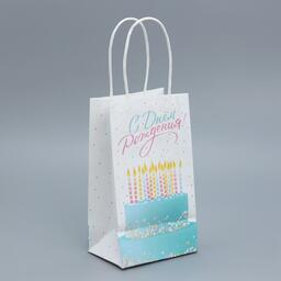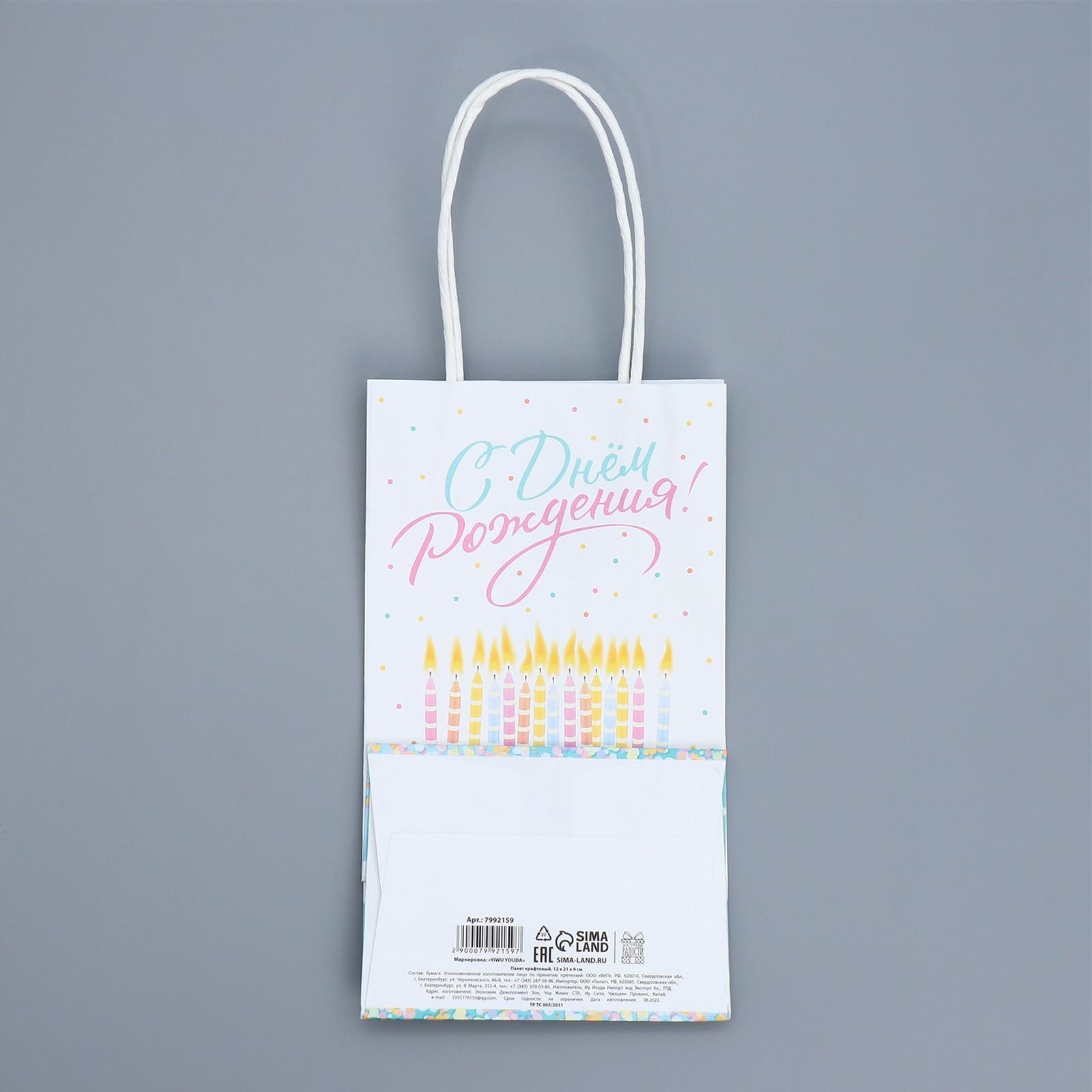 Пакет крафтовый «С Днем рождения!», 12 × 21 × 9 см