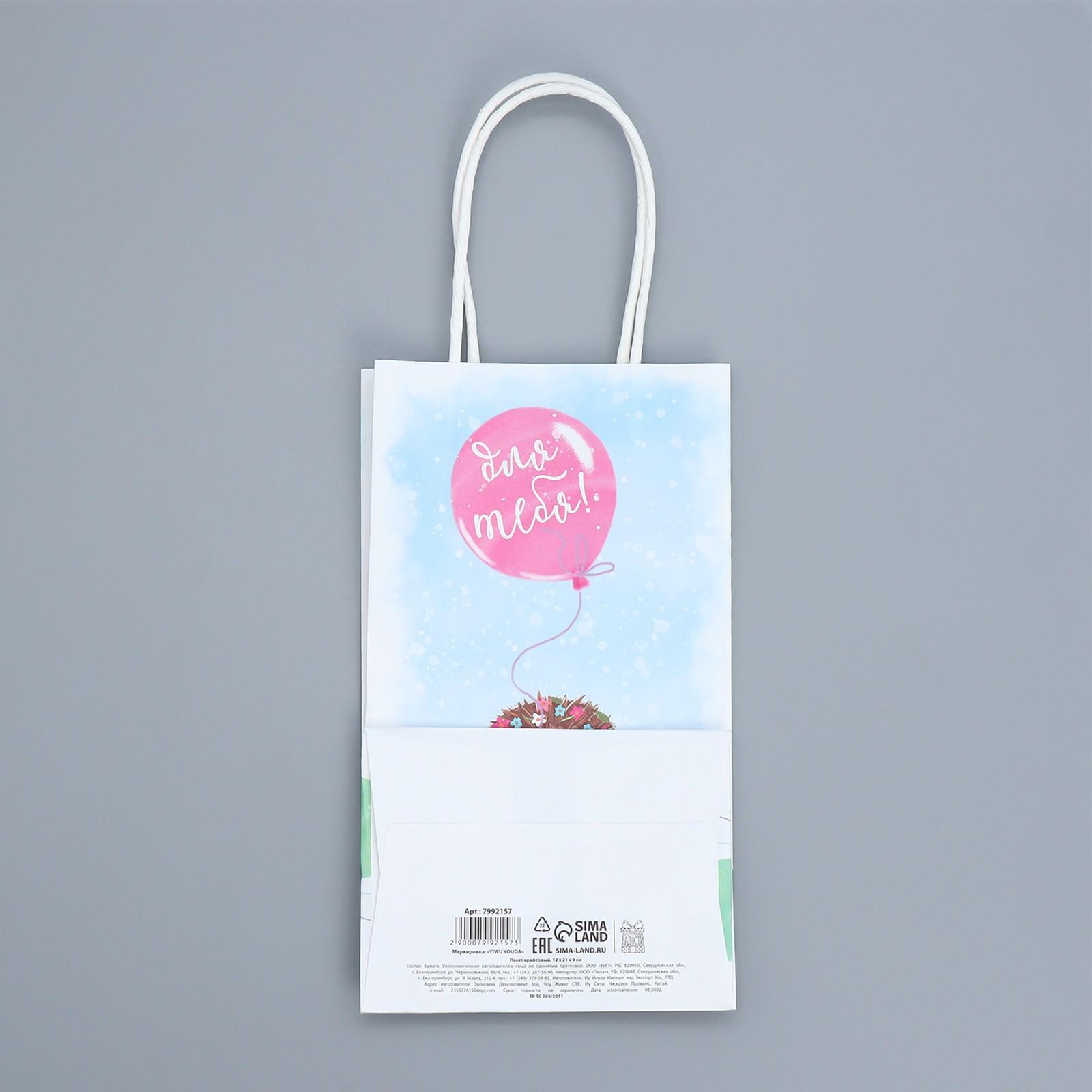 Пакет крафтовый «Для тебя», 12 × 21 × 9 см