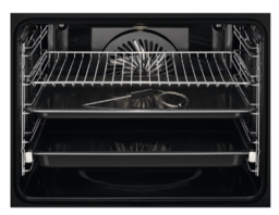 • В комплекте решетка, противень (плоский), глубокий противень, термощуп