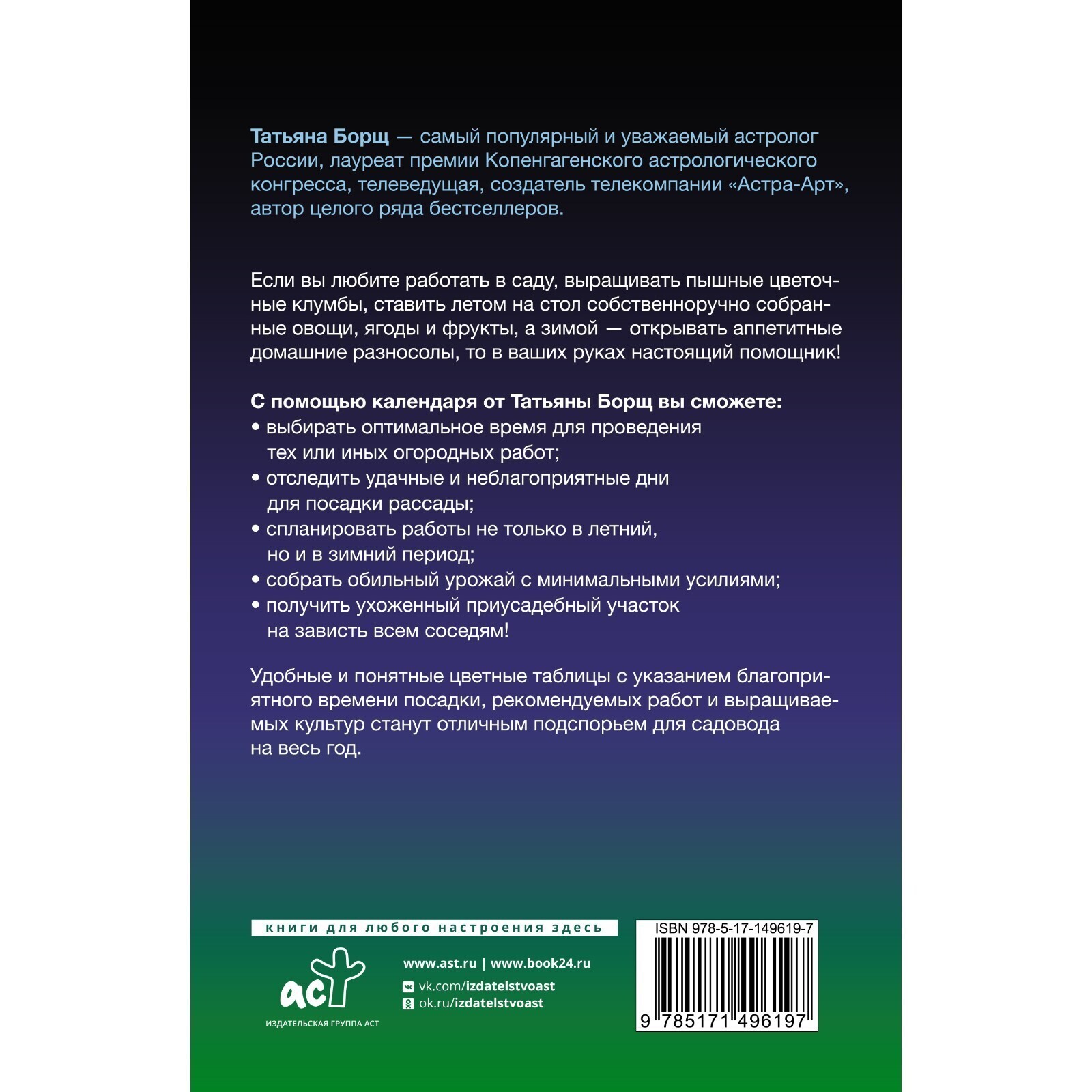 Если вы любите работать в саду, выращивать пышные цветочные клумбы, ставить летом на стол собственноручно собранные овощи, ягоды и фрукты, а зимой — открывать аппетитные домашние разносолы, то в ваших руках настоящий помощник! С помощью календаря от Татьяны Борщ вы сможете: