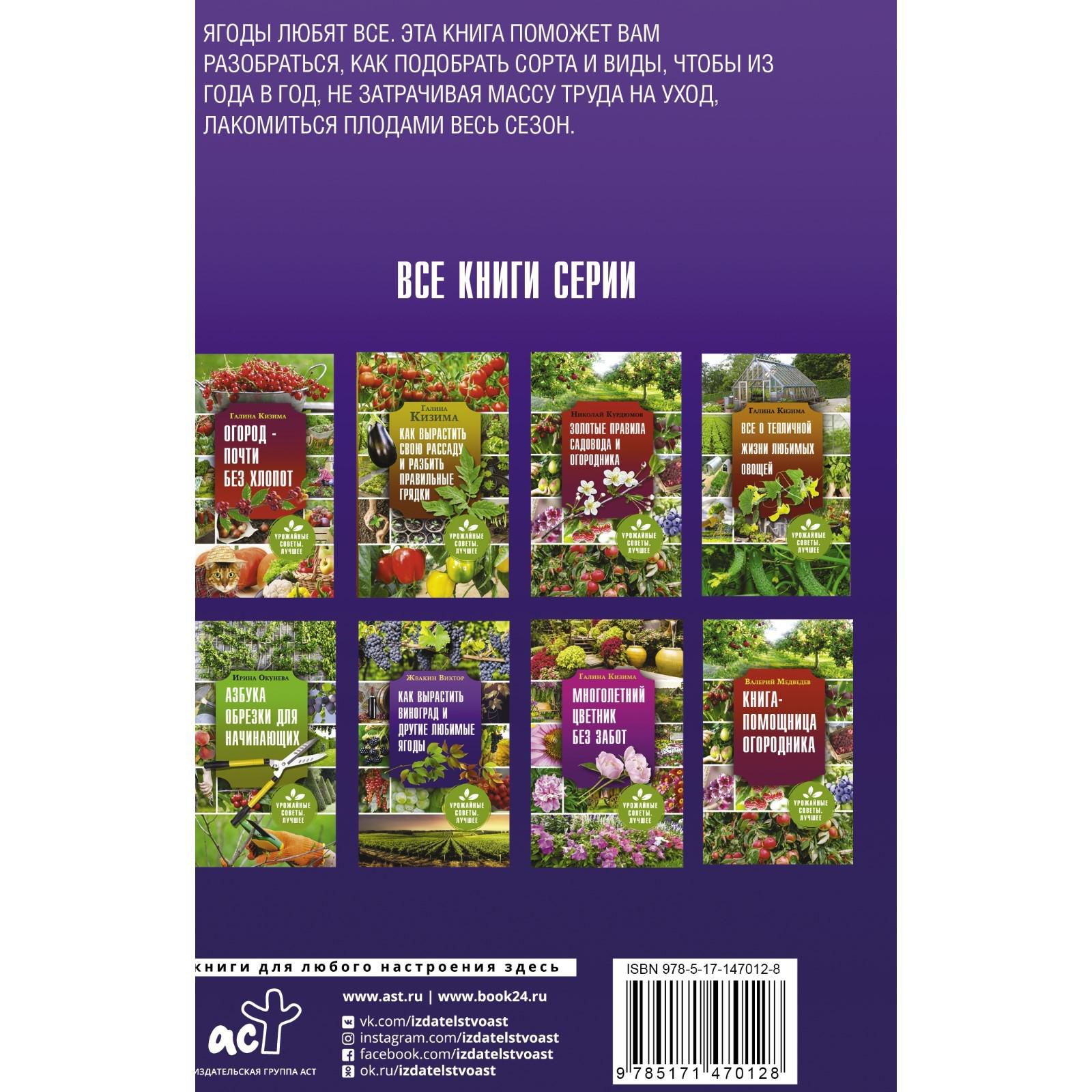 Ягоды любят все. Даже состоятельные владельцы загородных домов просят ландшафтных дизайнеров предусмотреть в плане благоустройства участка место для малины, смородины, крыжовника. А еще в последние годы у жителей средней полосы и севера России особым спросом пользуется виноград, ведь он дарит не только солнечные гроздья, но и очень декоративен. Неизменный интерес к ягодным кустарникам не случаен. Ведь при правильном подборе сортов и видов из года в год их плодами можно лакомиться весь сезон. Особого ухода они, как правило, не требуют. Но у каждой культуры есть свои «фирменные» особенности. О них вы и узнаете из этой книги.