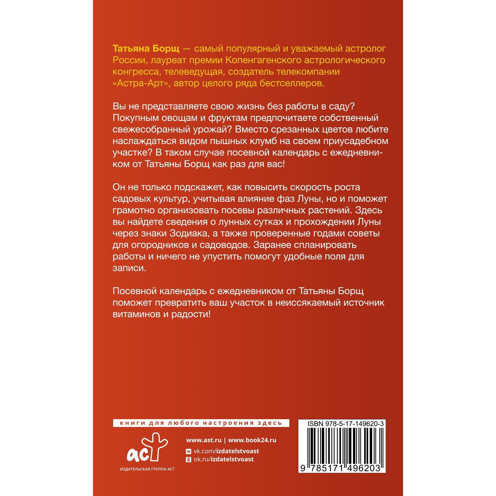 Вы не представляете свою жизнь без работы в саду? Покупным овощам и фруктам предпочитаете собственный свежесобранный урожай? Вместо срезанных цветов любите наслаждаться видом пышных клумб на своем приусадебном участке? В таком случае посевной календарь с ежедневником от Татьяны Борщ как раз для вас!