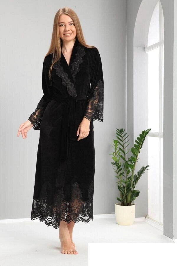 Халат женский велюр бамбук Nusa Niki Kadife черный