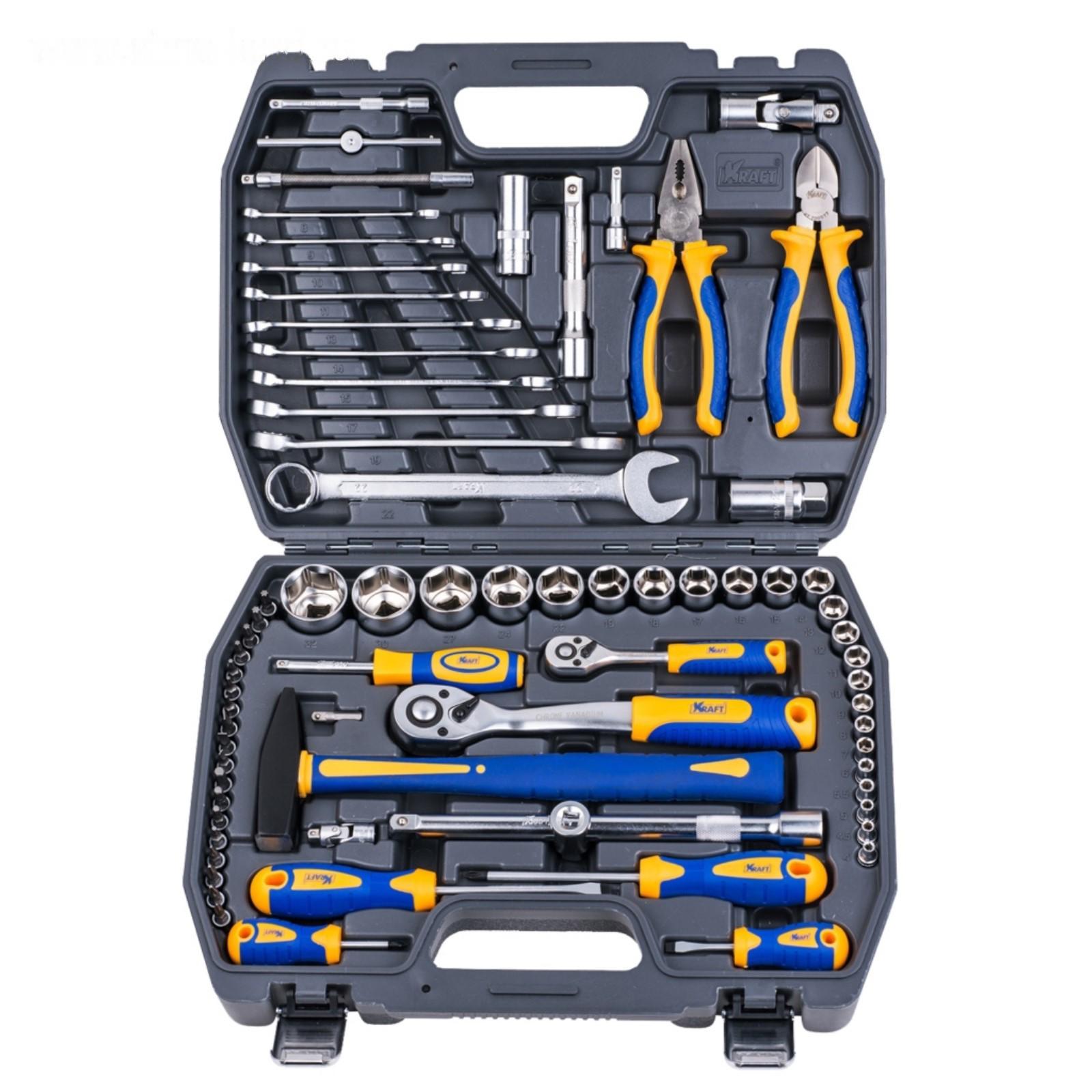 Набор инструмента KRAFT KT700677, 1/2" и 1/4" 6 гр. головки, 4-32 мм, 73 предмета, кейс