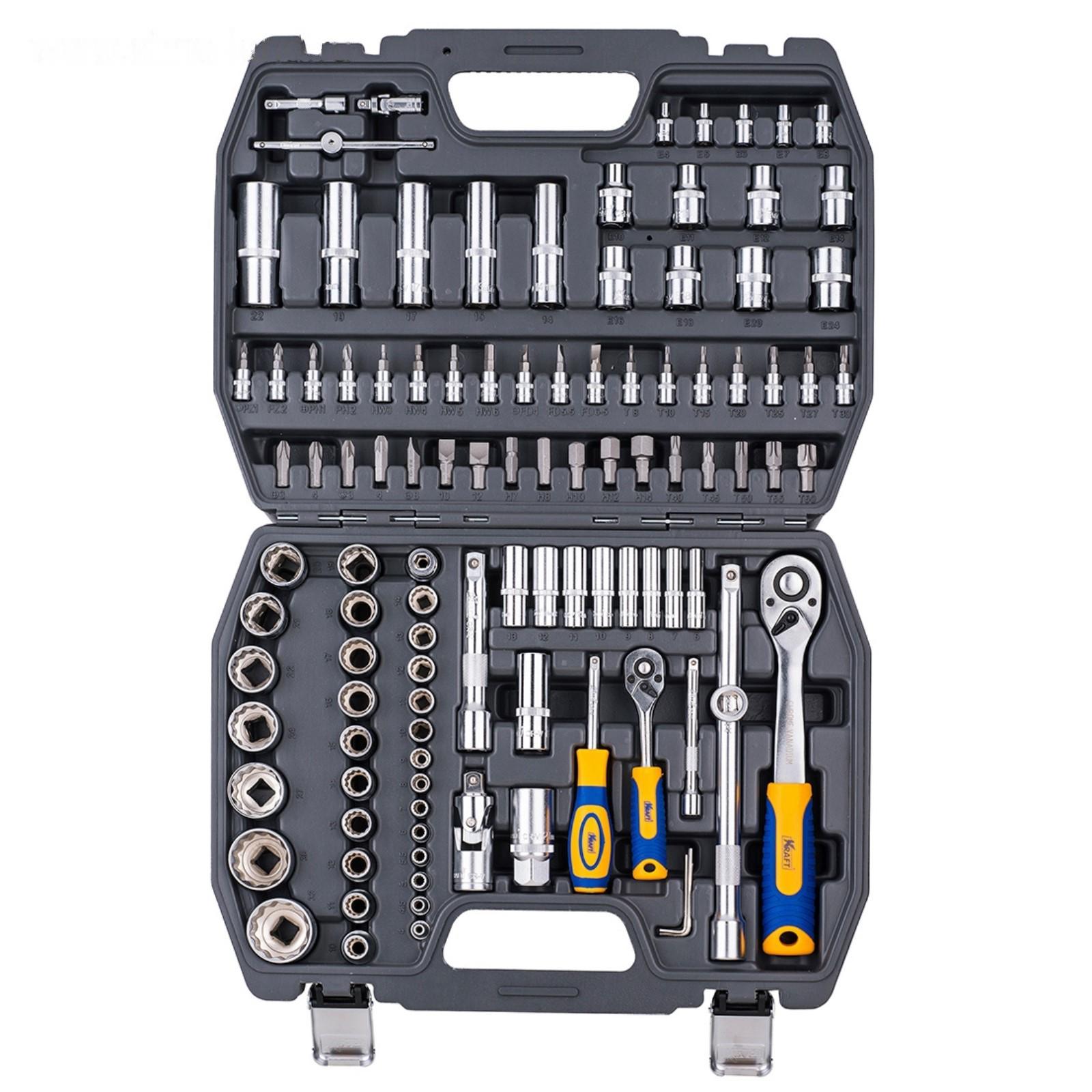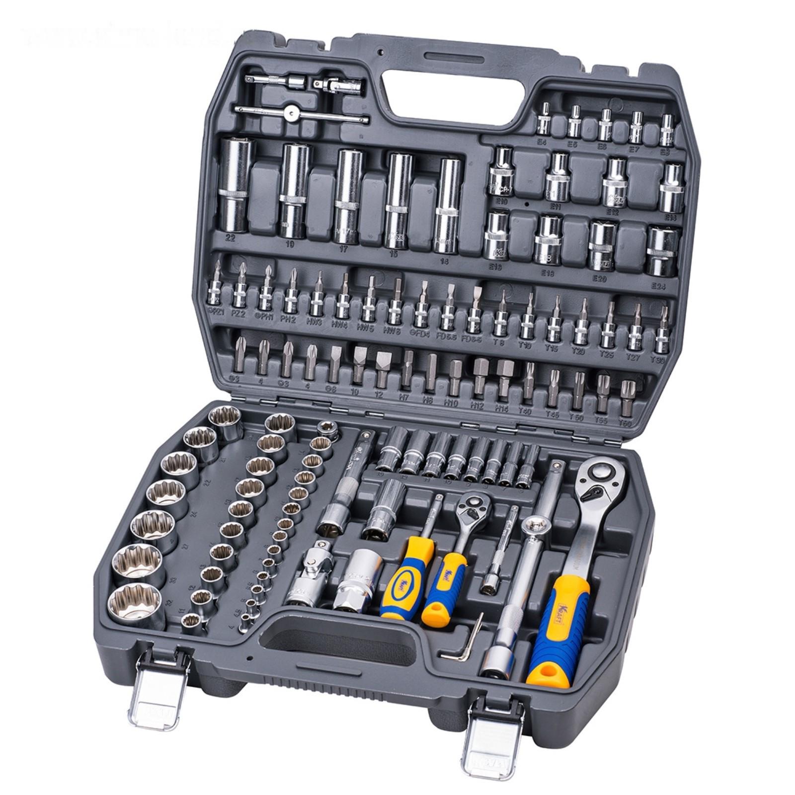 Набор инструмента KRAFT KT700680, 1/2" и 1/4" 12 гр. головки, 4-32 мм, Е4-Е24, 108 пр.