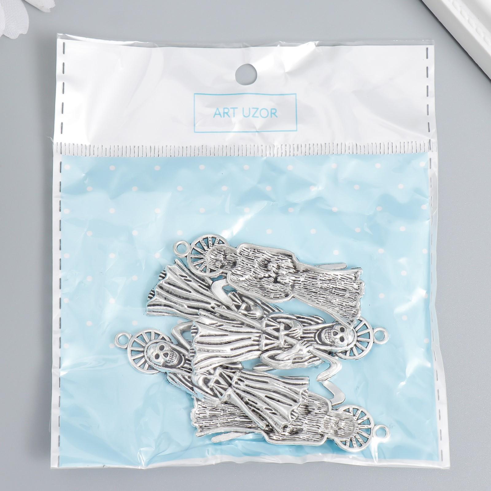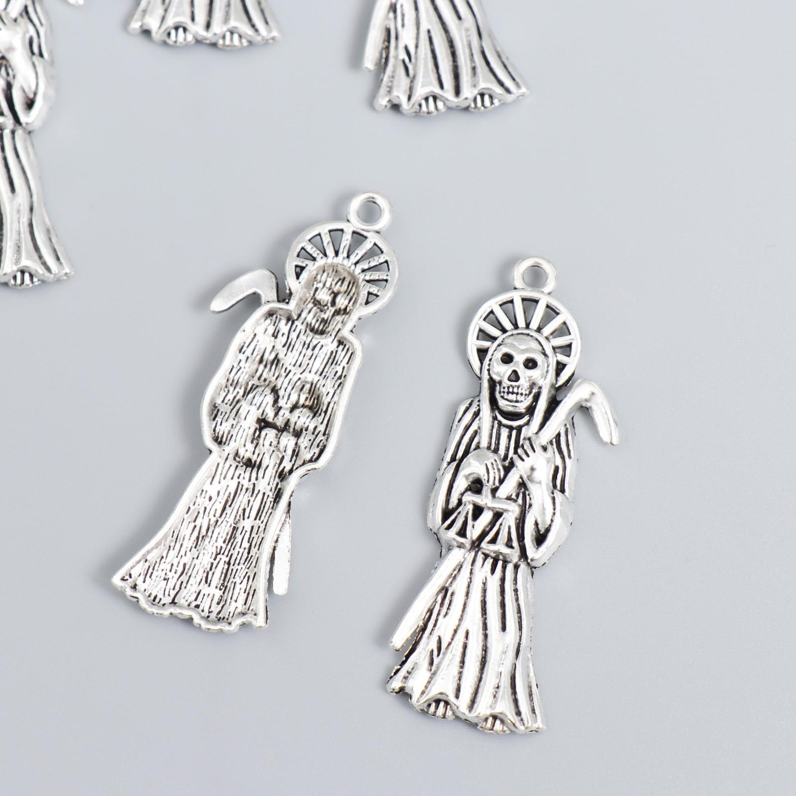 Декор для творчества металл "Смерть с косой" серебро набор 5 шт 5х1,7 см