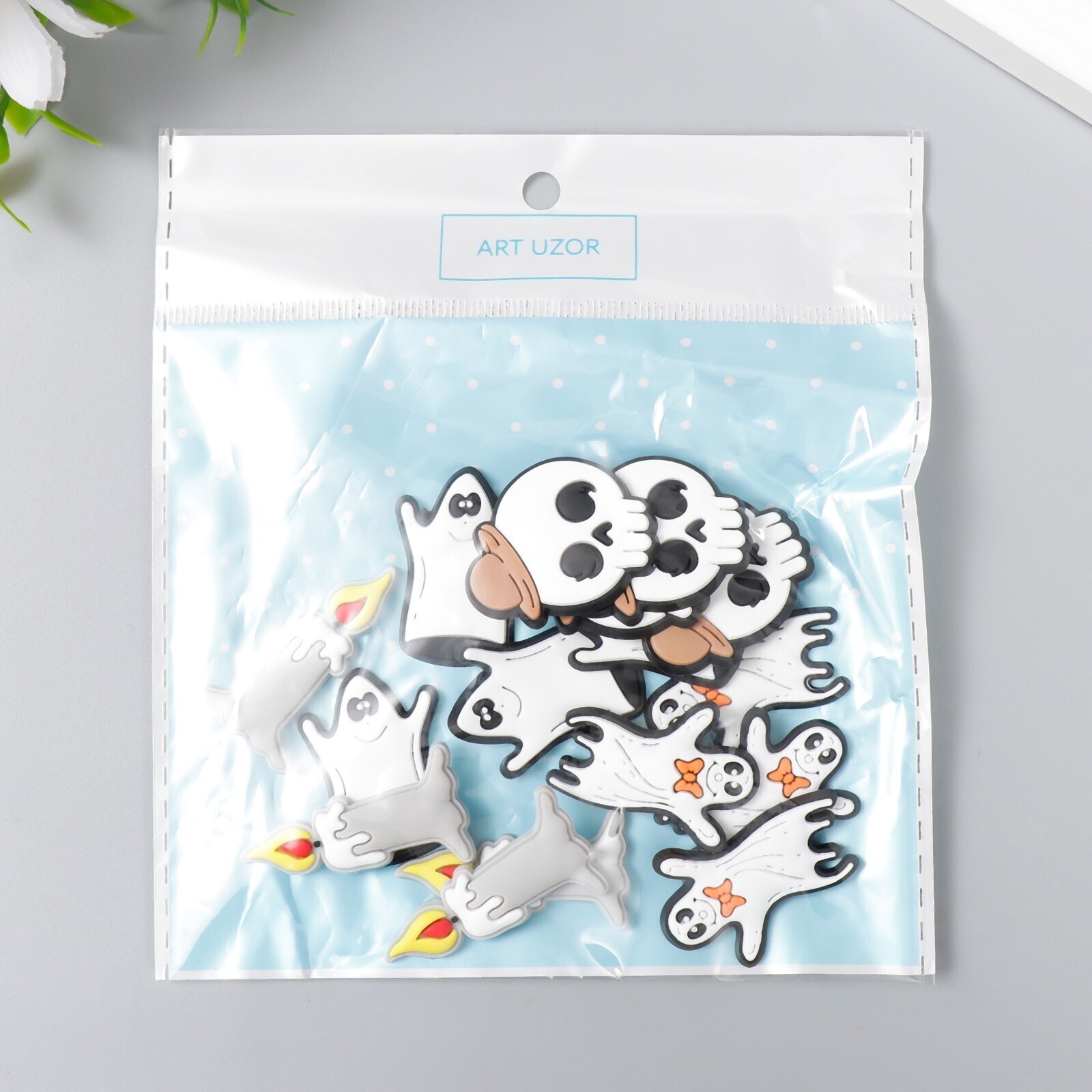 Декор для творчества резина "Приведения и череп" набор 16 шт МИКС 3х2,3 см