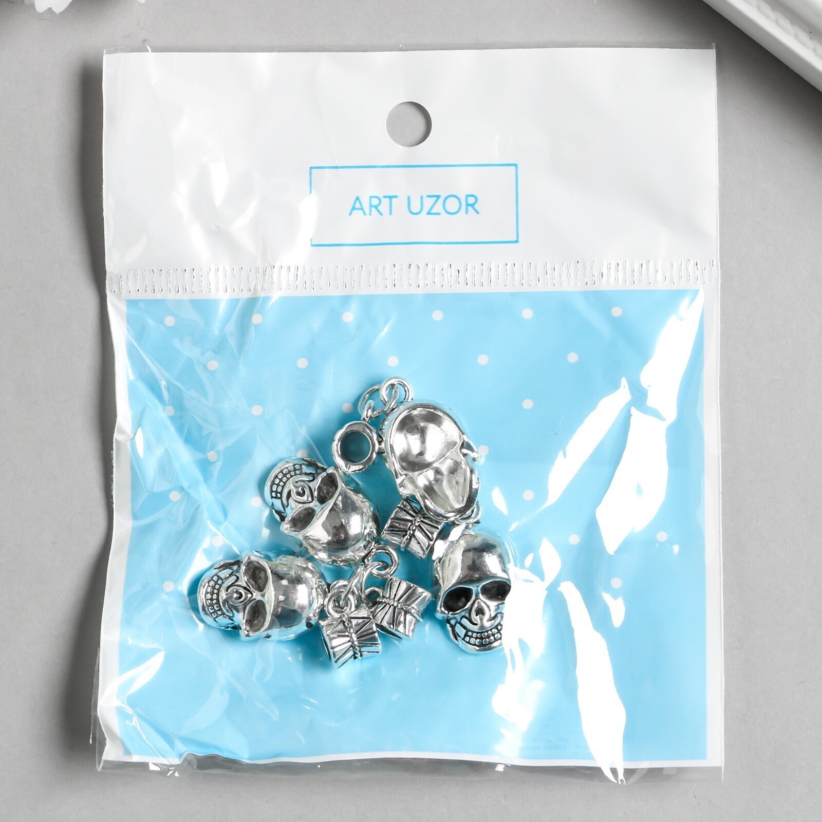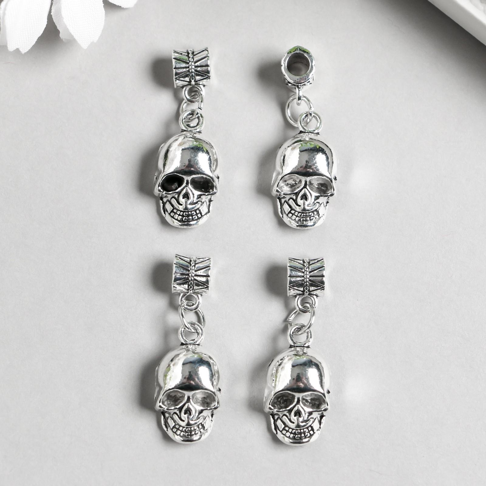 Бейл с подвеской металл для творчества "Череп" серебро 3,1 см