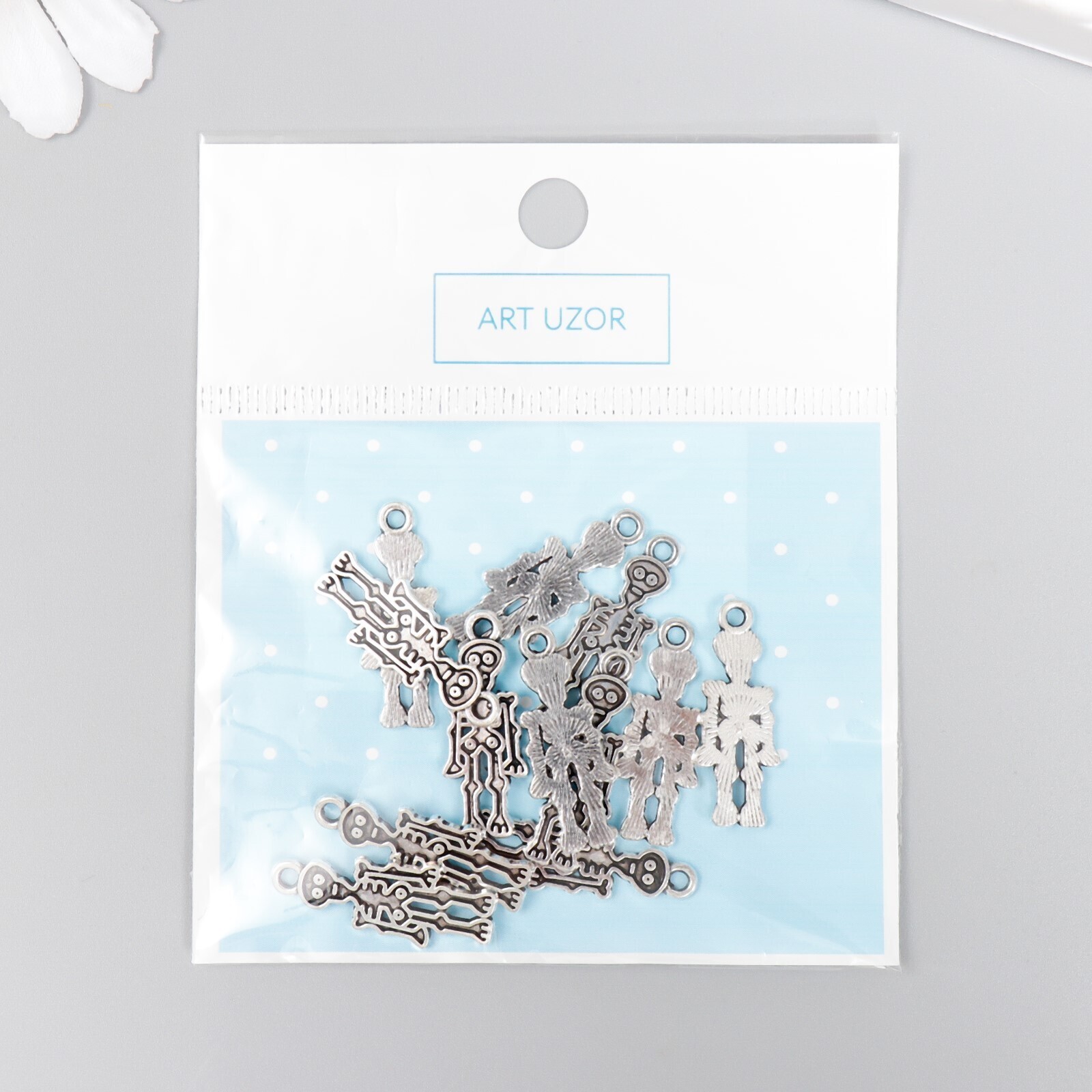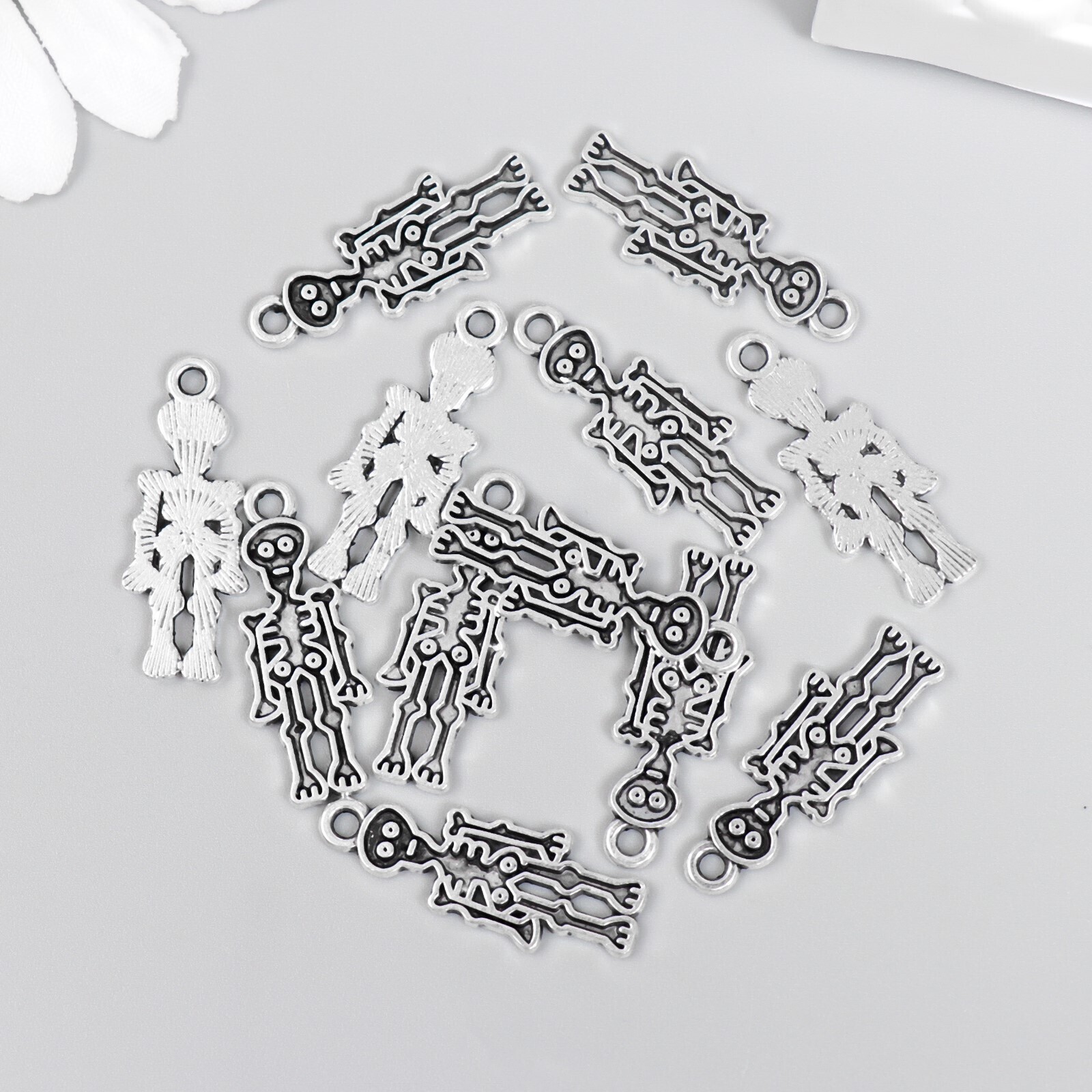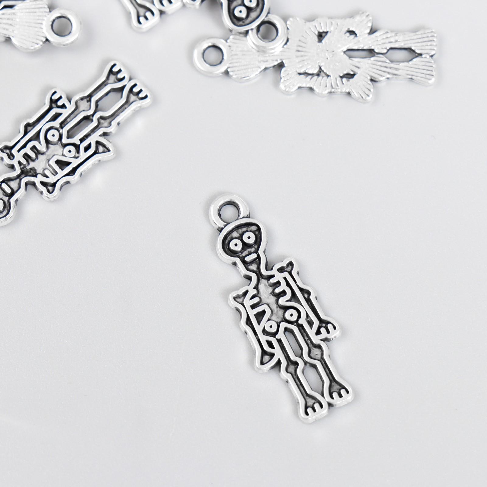 Декор для творчества металл "Скелетик" серебро 2,5х0,8 см