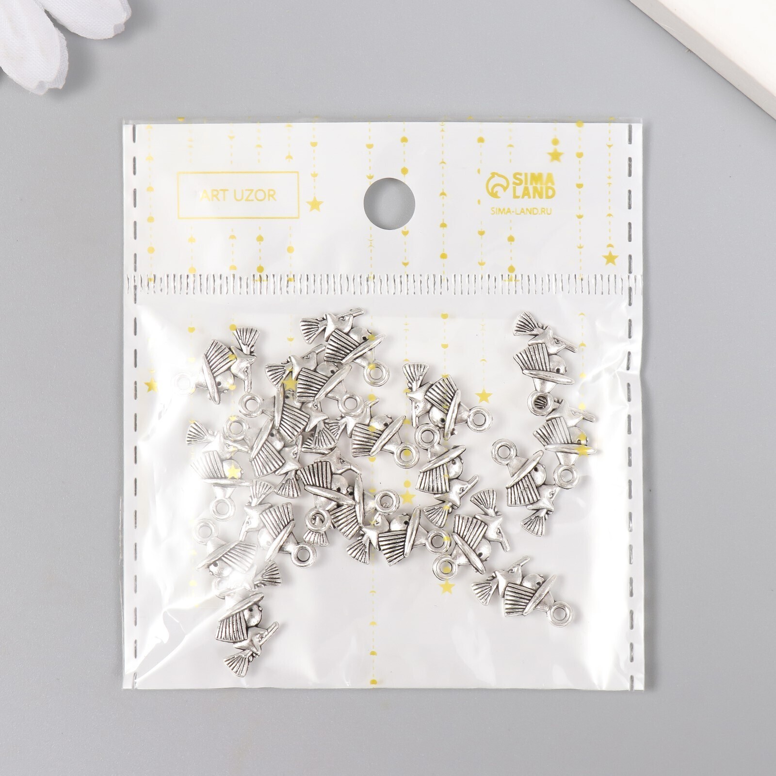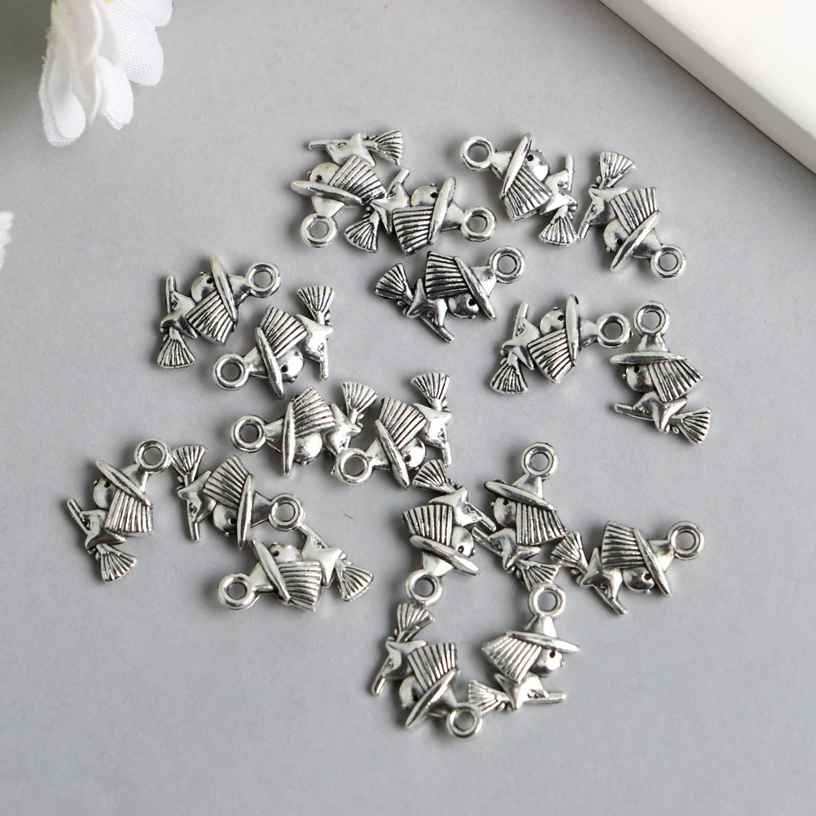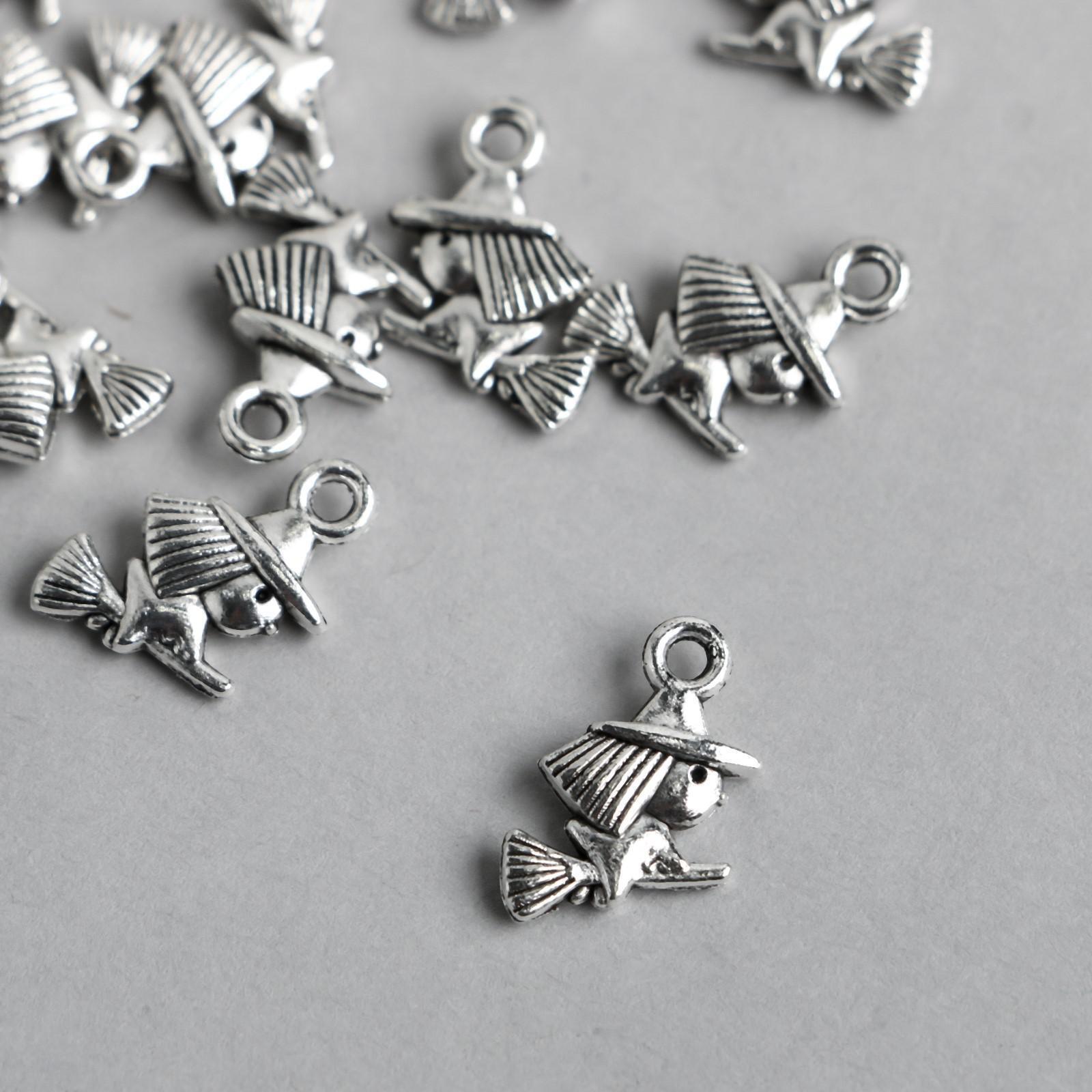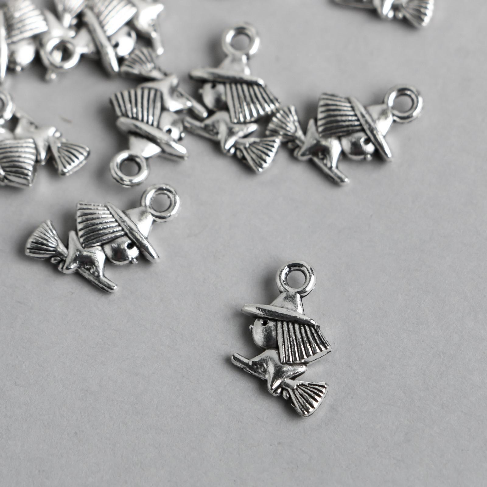 Декор металл для творчества "Ведьмочка на метле" серебро 7413 1,6х1 см