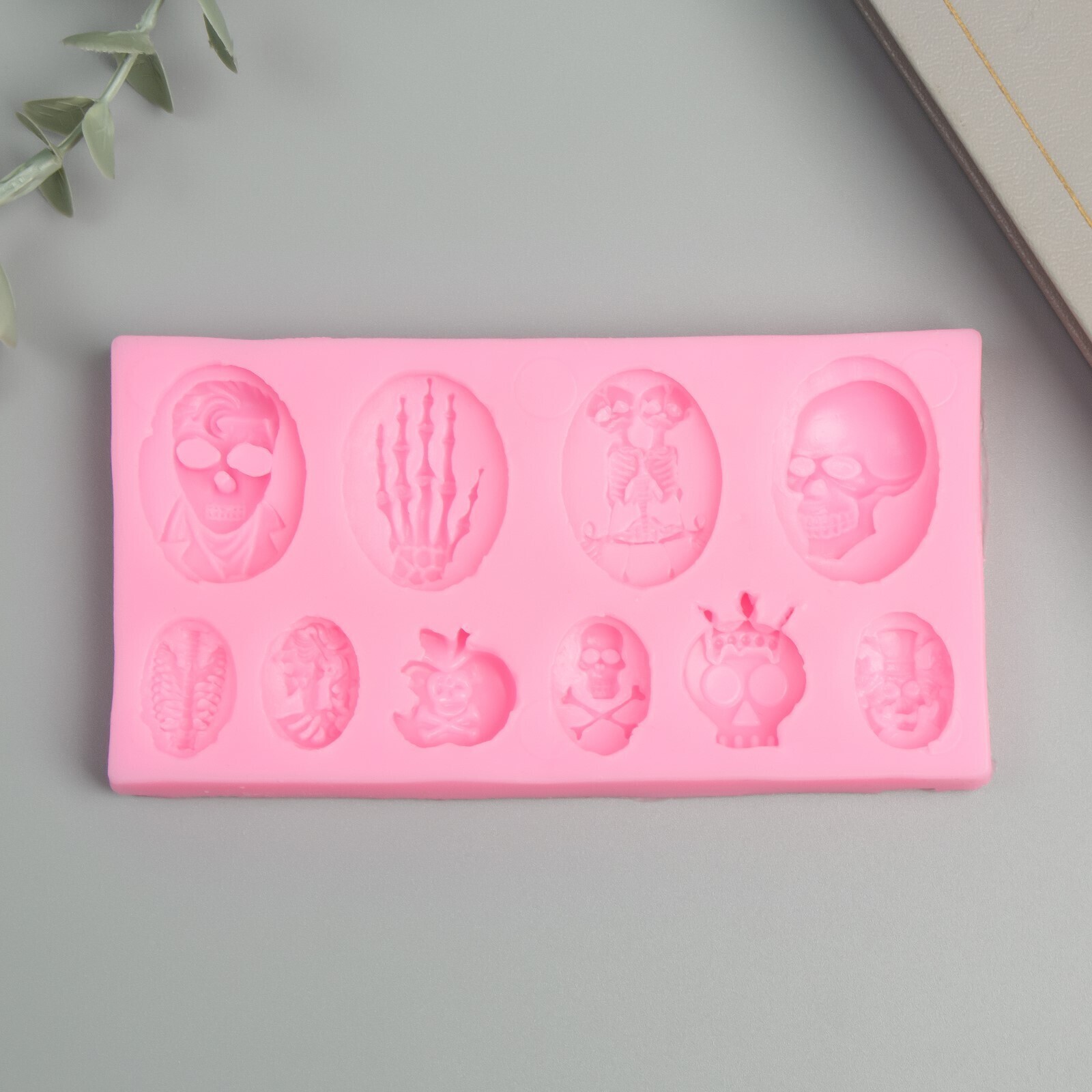 Молд силикон "Скелеты и черепа" 10 предметов 7,2х13,6 см