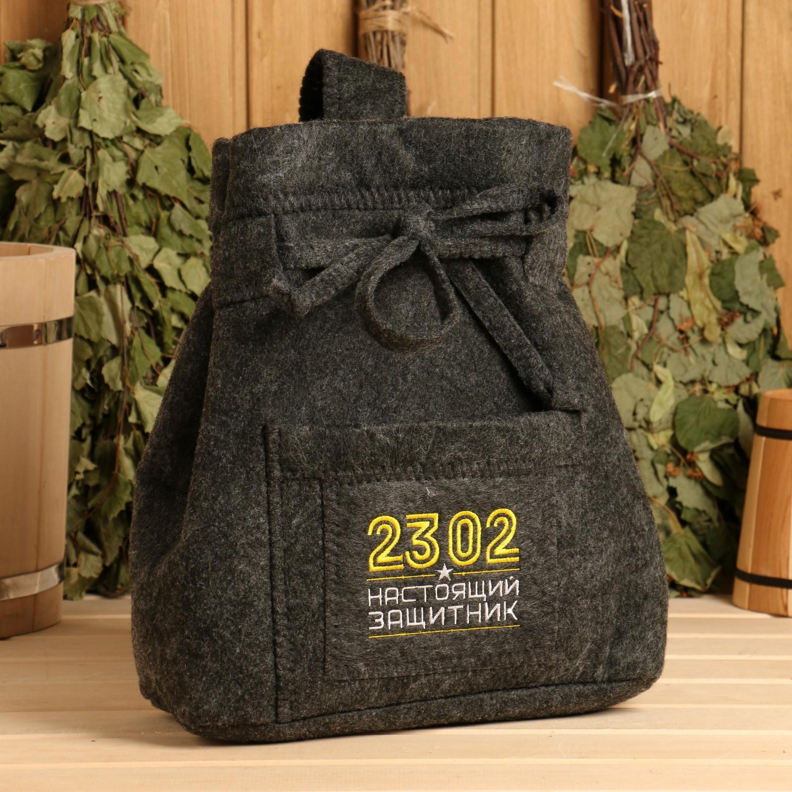 Набор для бани 4 предмета "23.02" шапка, коврик, рукавица, портфель
