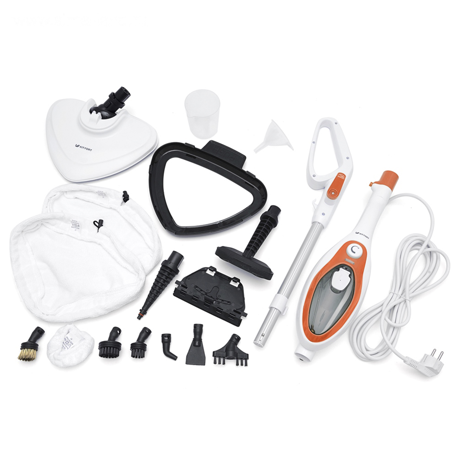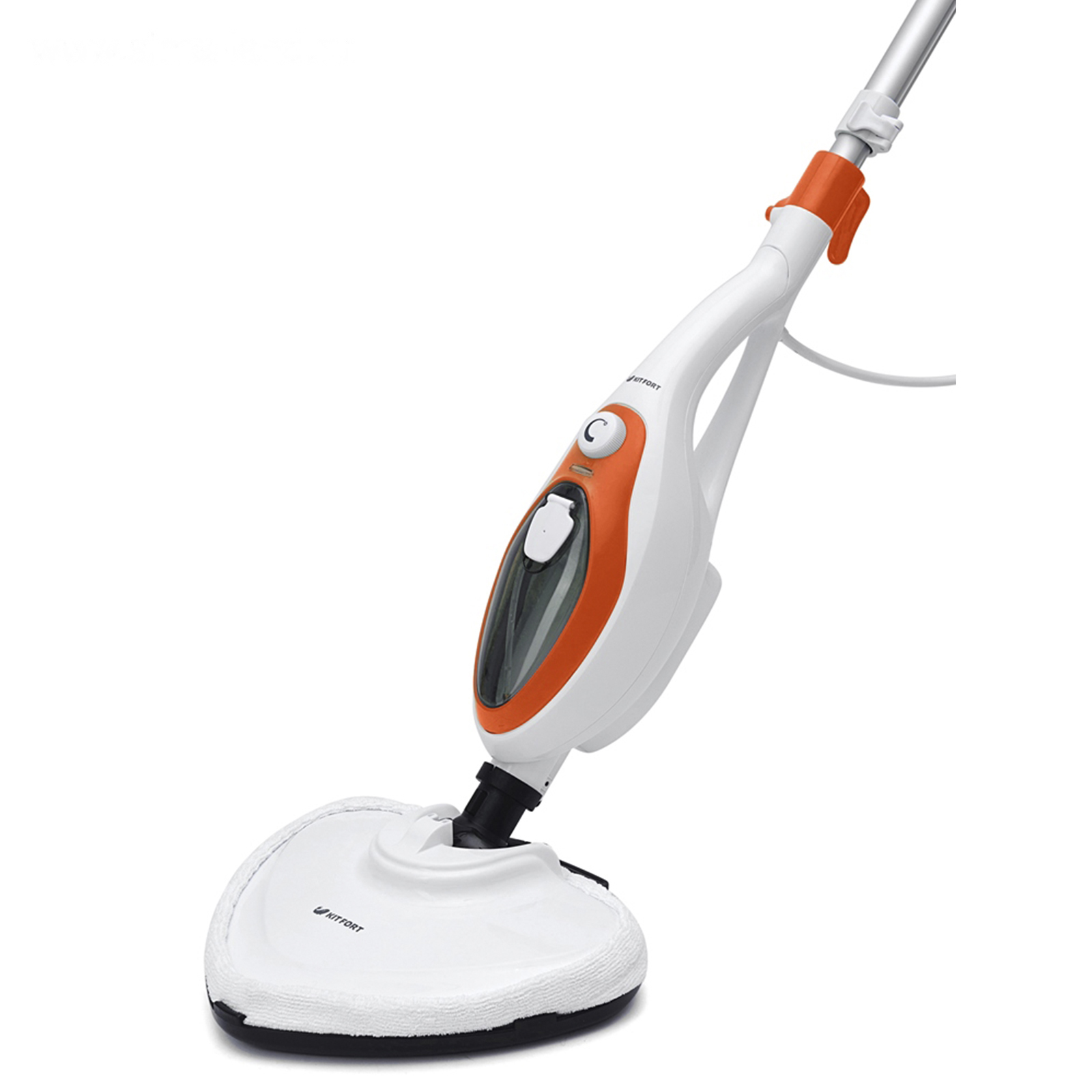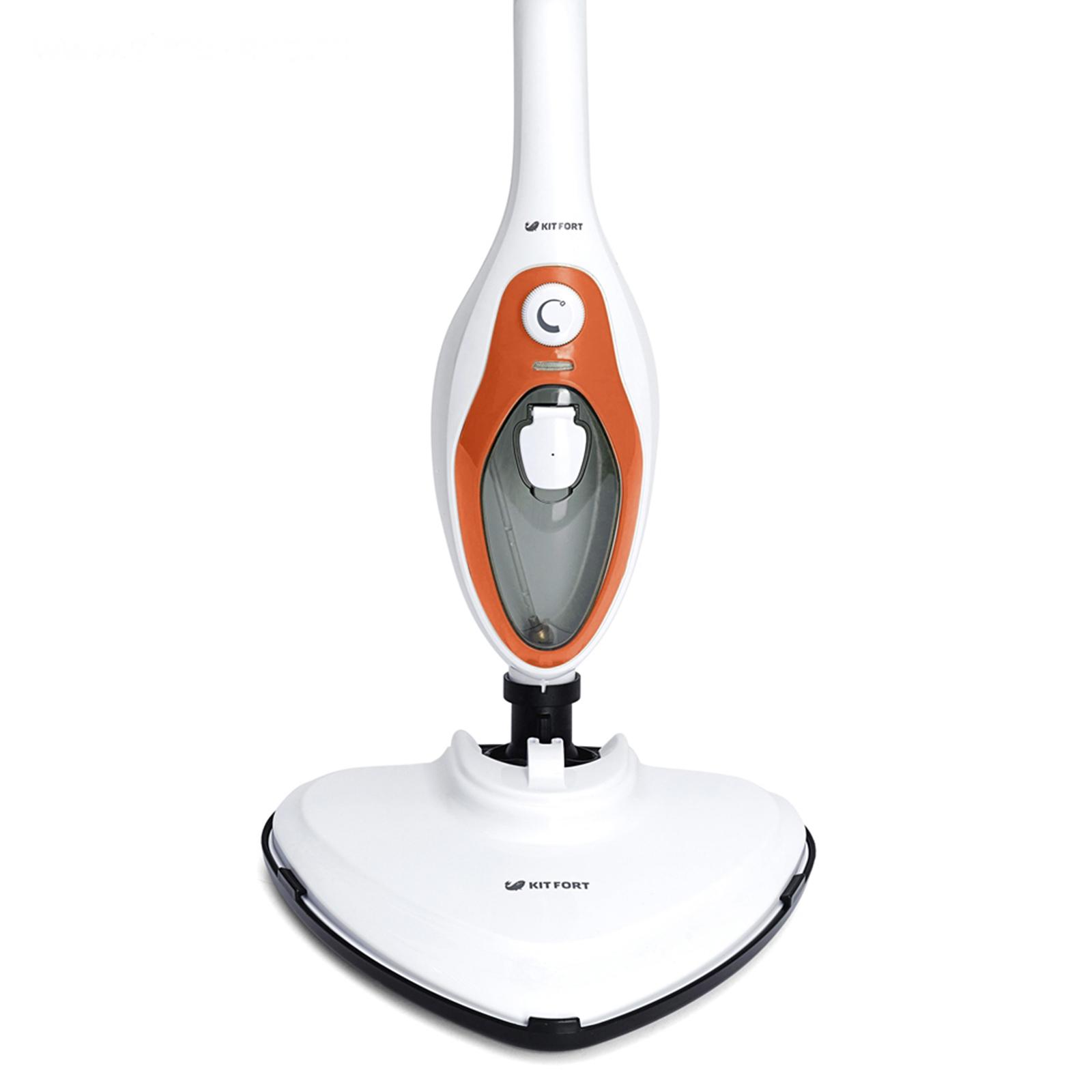 Паровая швабра Kitfort KT-1004-3, 1500 Вт, 350 мл, шнур 4.8 м, бело-оранжевая