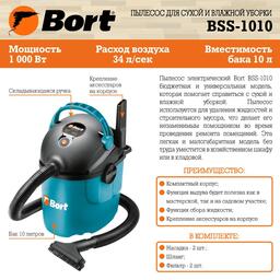 Пылесос Bort BSS-1010, 1000/220 Вт, сухая/влажная уборка, 10 л, бирюзовый