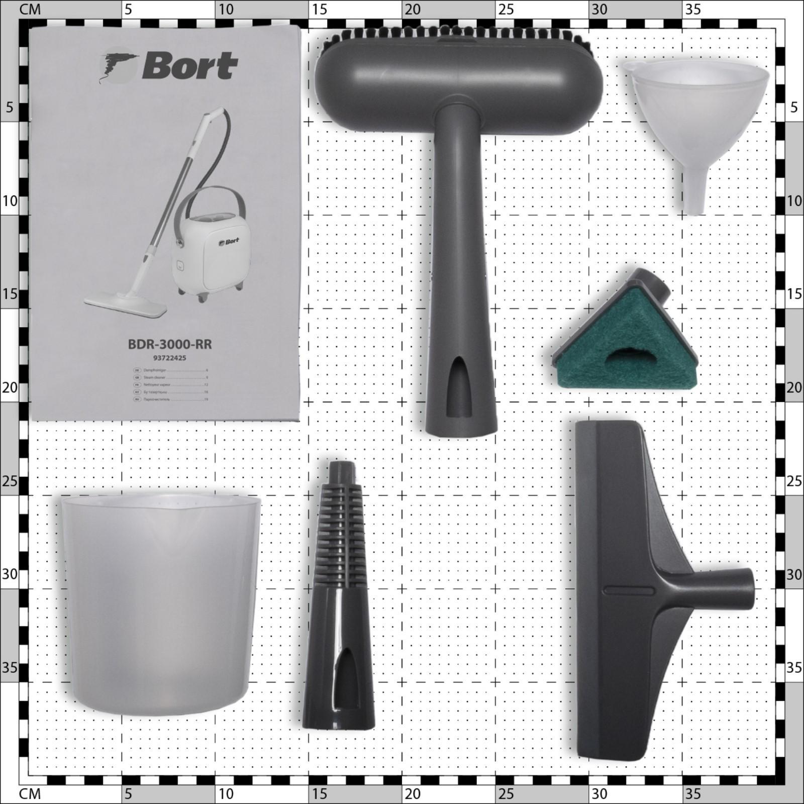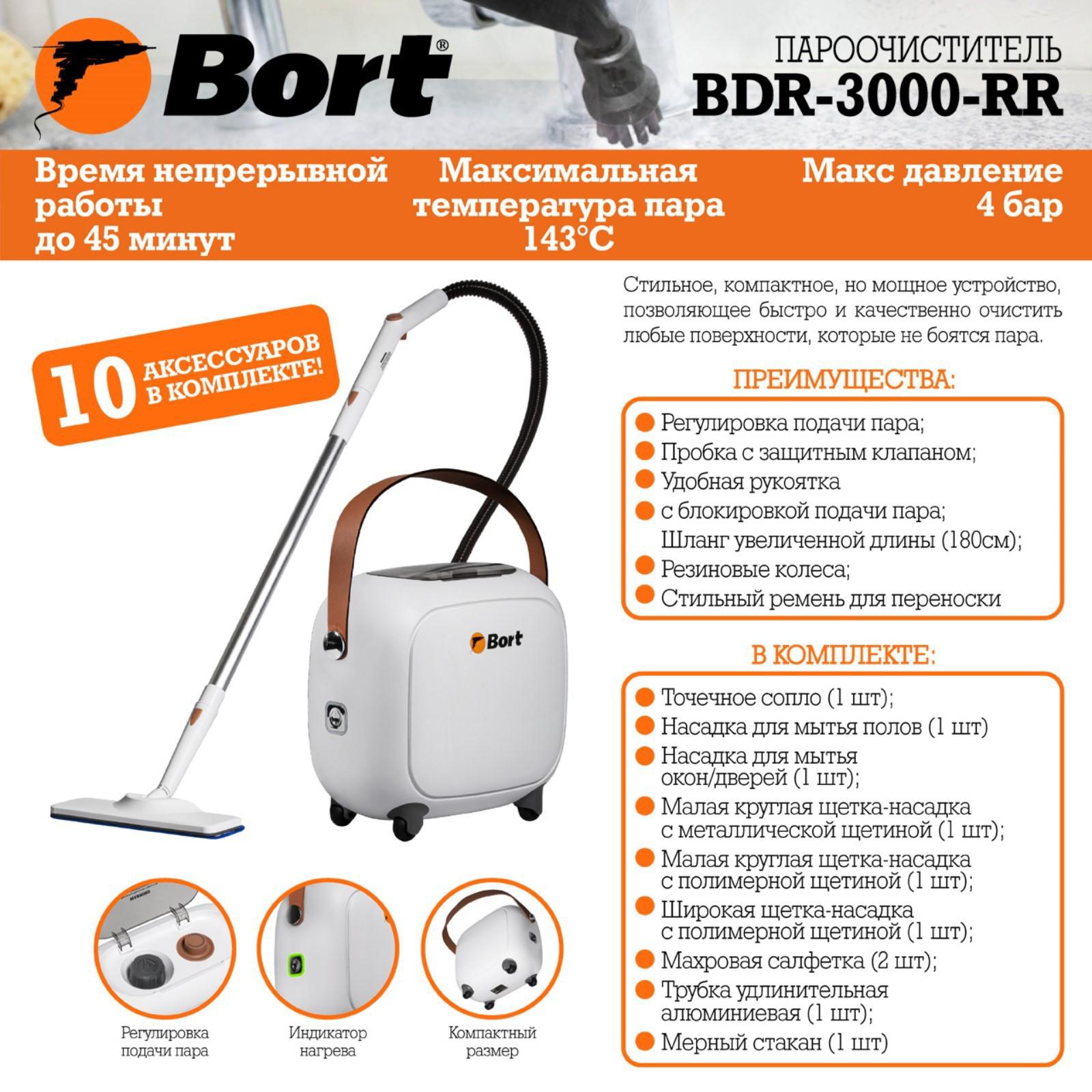 Пароочиститель Bort BDR-3000-RR, 2200 Вт, 45 г/мин, 1.2 л, нагрев 480 сек, белый