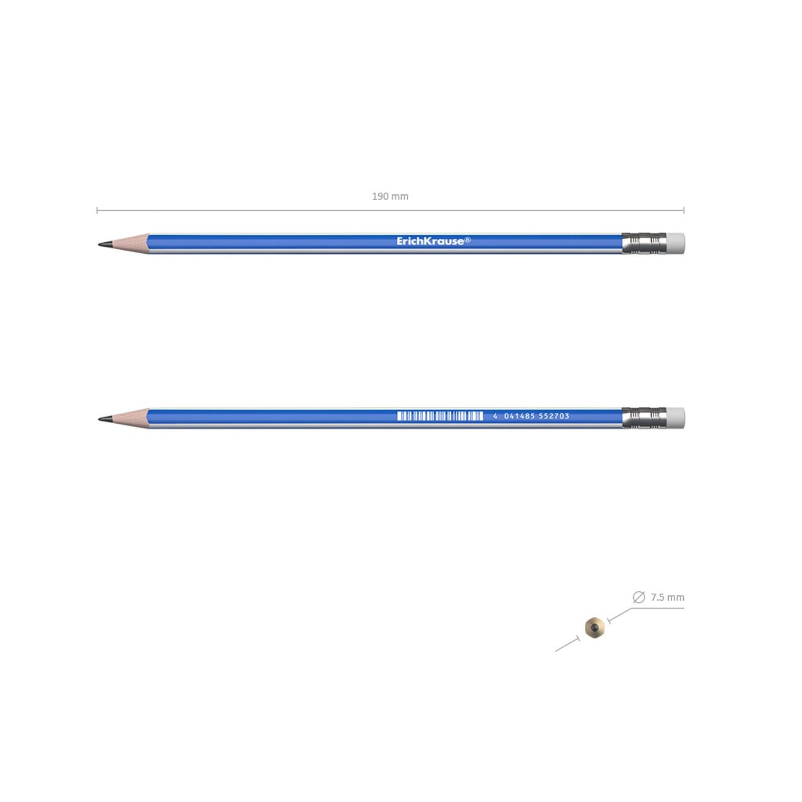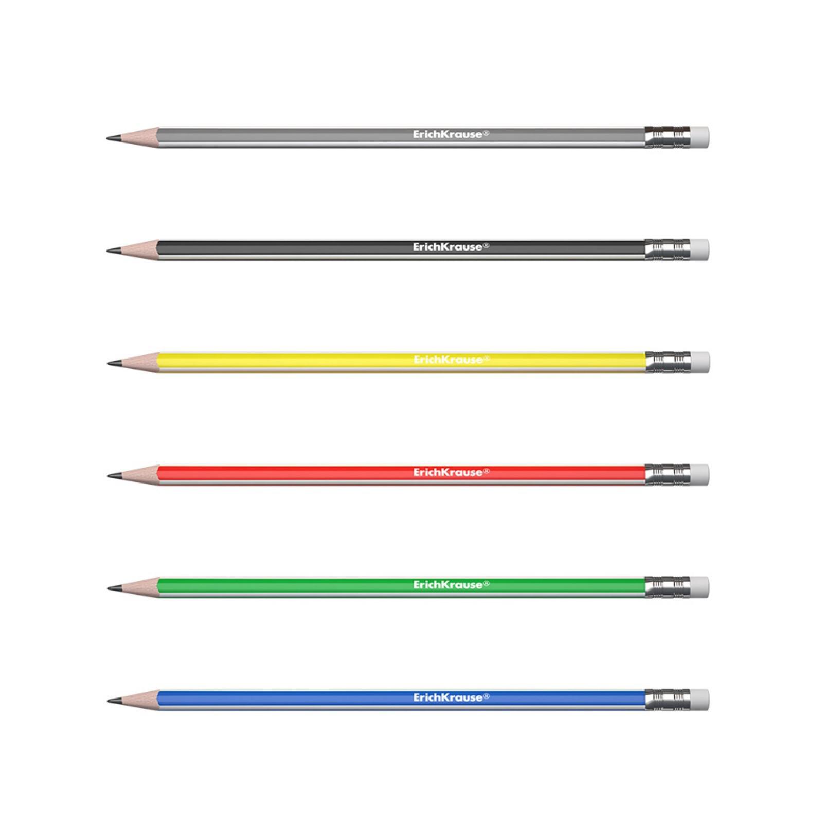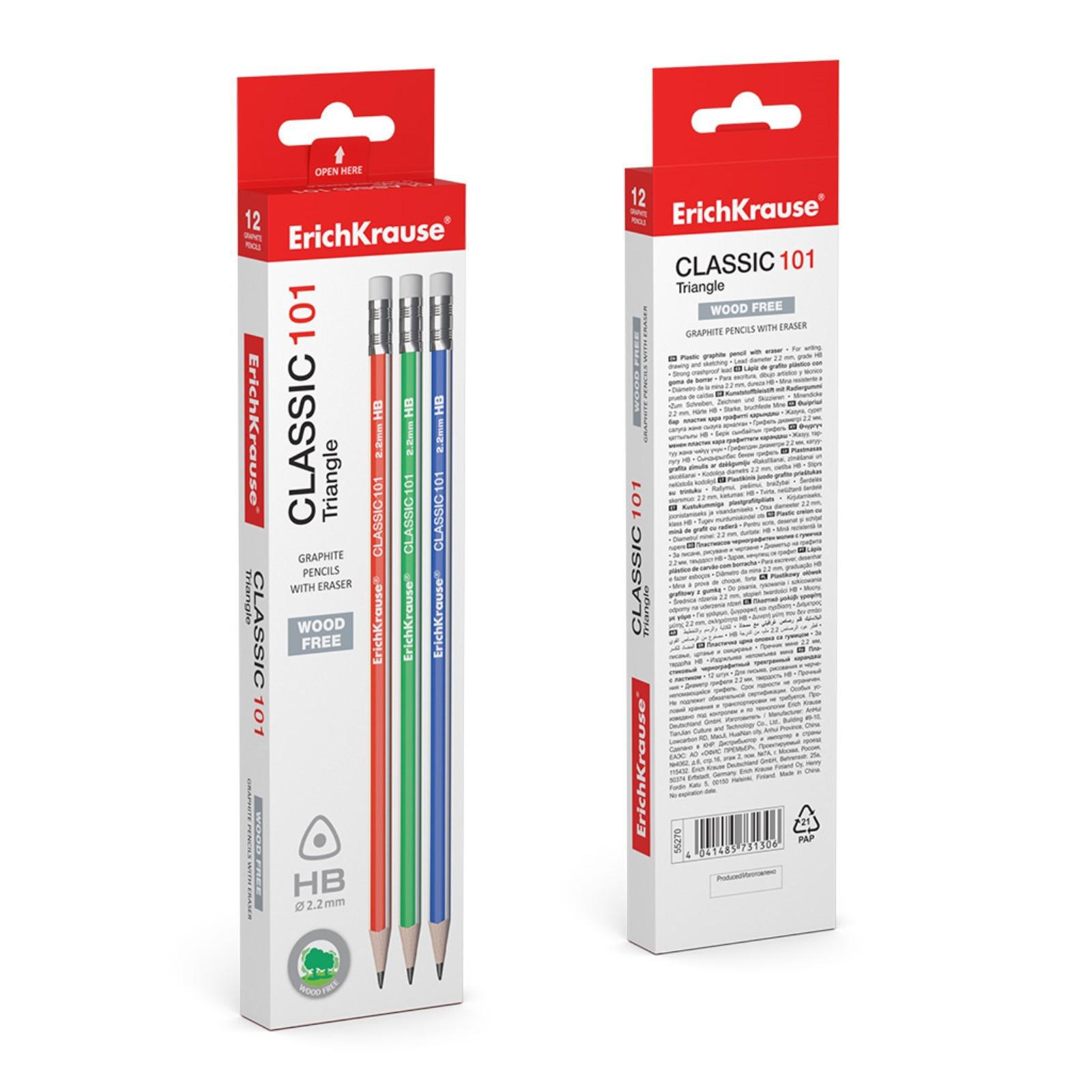 Карандаш чернографитный с ластиком ErichKrause Classic triangle 101, HB, грифель d= 2.2 мм, трёхгранный, корпус биоразлагаемый пластик, МИКС