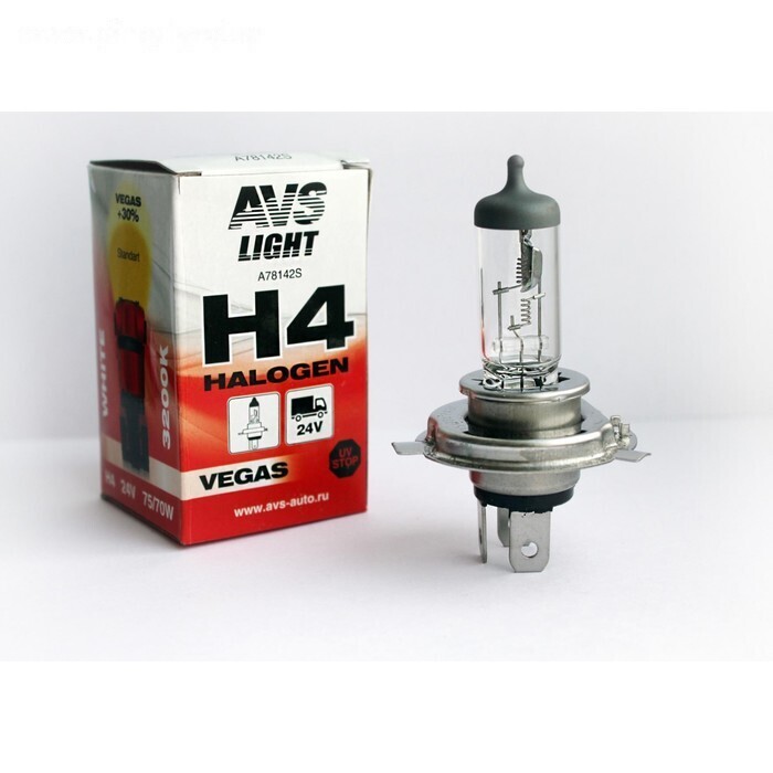 Лампа автомобильная AVS Vegas H4, 24 В, 75/70 Вт