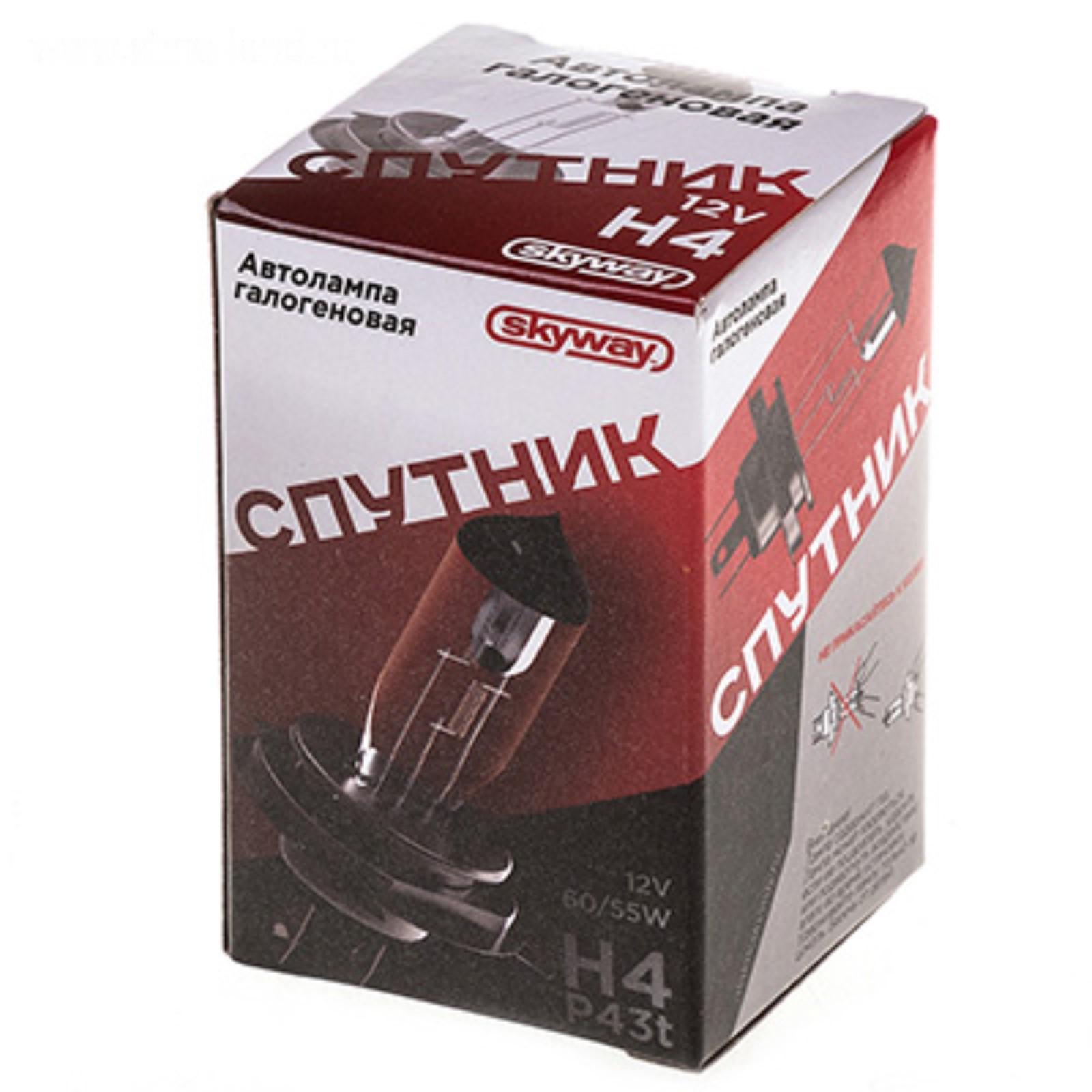 Лампа автомобильная H4, 12В 60/55Вт, P43t, Спутник, Skyway, 1 шт , S09101040