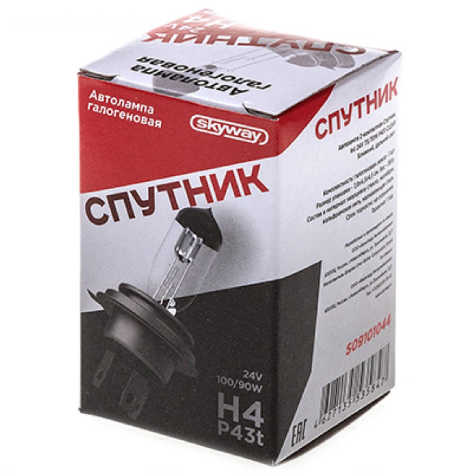 Лампа автомобильная H4, 24В, 100/90Вт, P43t, Спутник, Skyway, 1 шт , S09101044