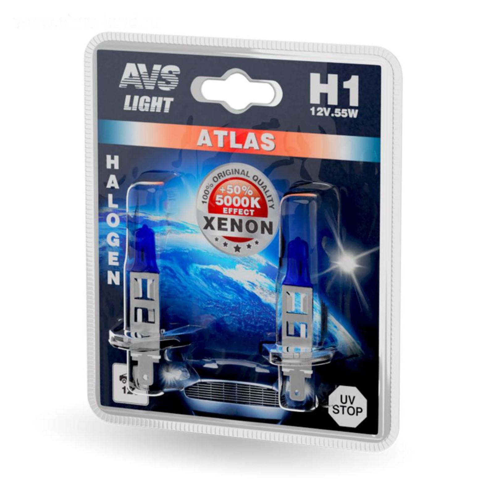 Лампа автомобильная AVS ATLAS, 5000К, H1,12 В, 55 Вт, набор 2 шт