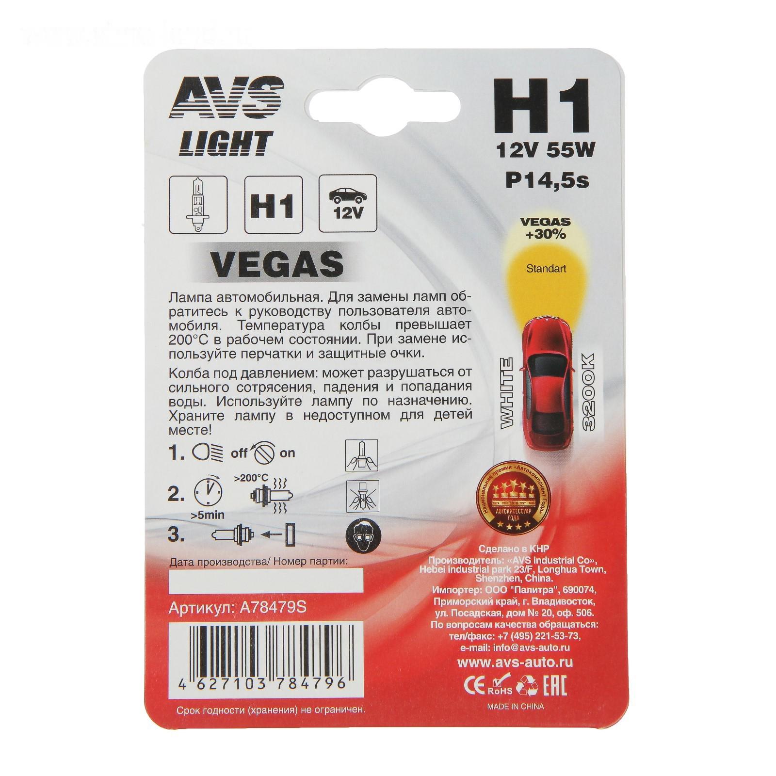 Лампа автомобильная AVS Vegas, H1.12 В, 55 Вт, блистер