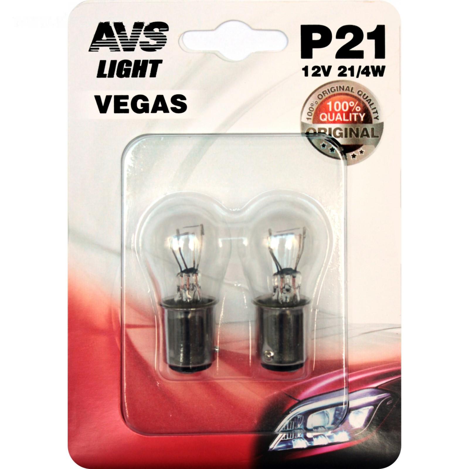 Лампа автомобильная AVS Vegas в блистере 12 В, P21W (BAU15S), набор 2 шт