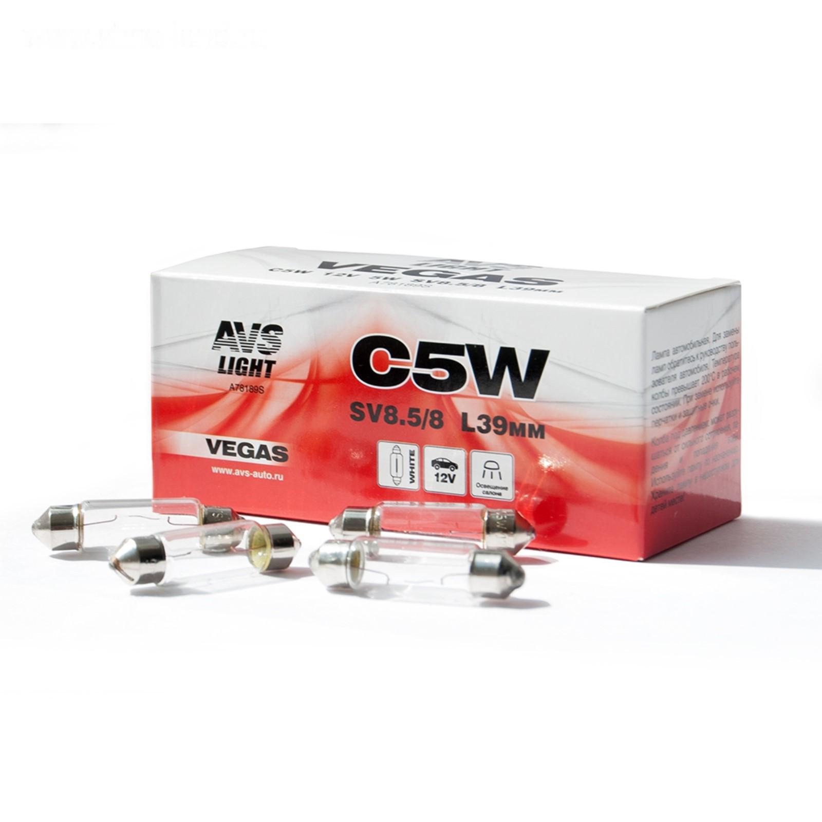 Лампа автомобильная AVS Vegas 12 В, С5W (SV8.5/8) L 39мм, набор 10 шт