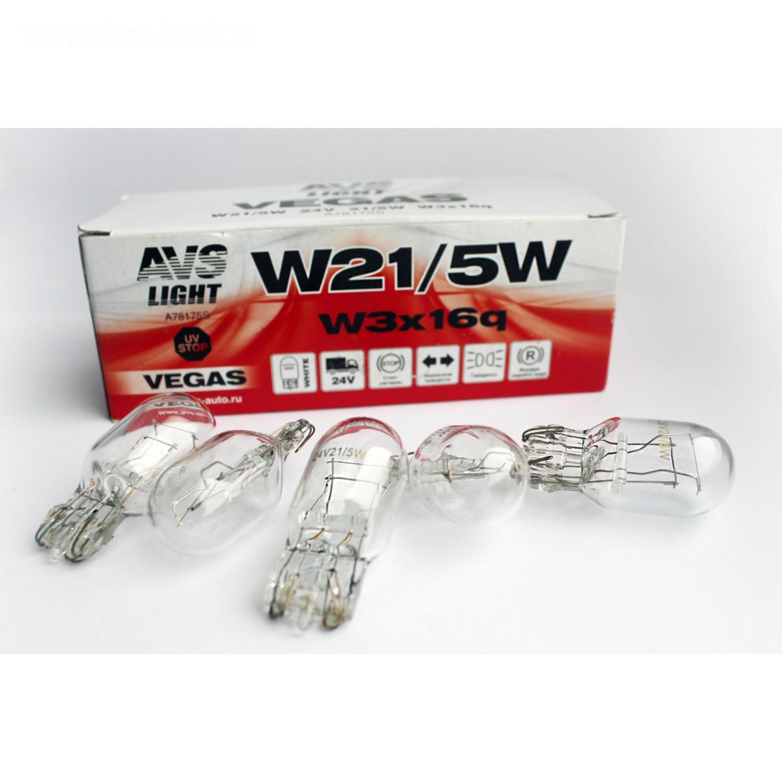 Лампа автомобильная AVS Vegas 24 В, W21/5W (W3x16q), набор 10 шт