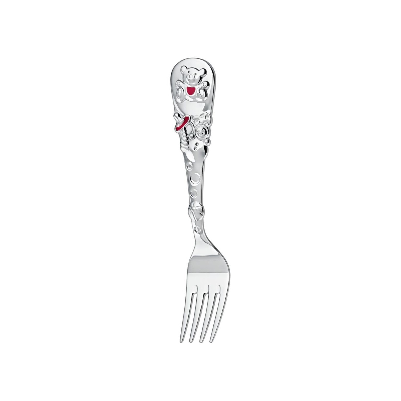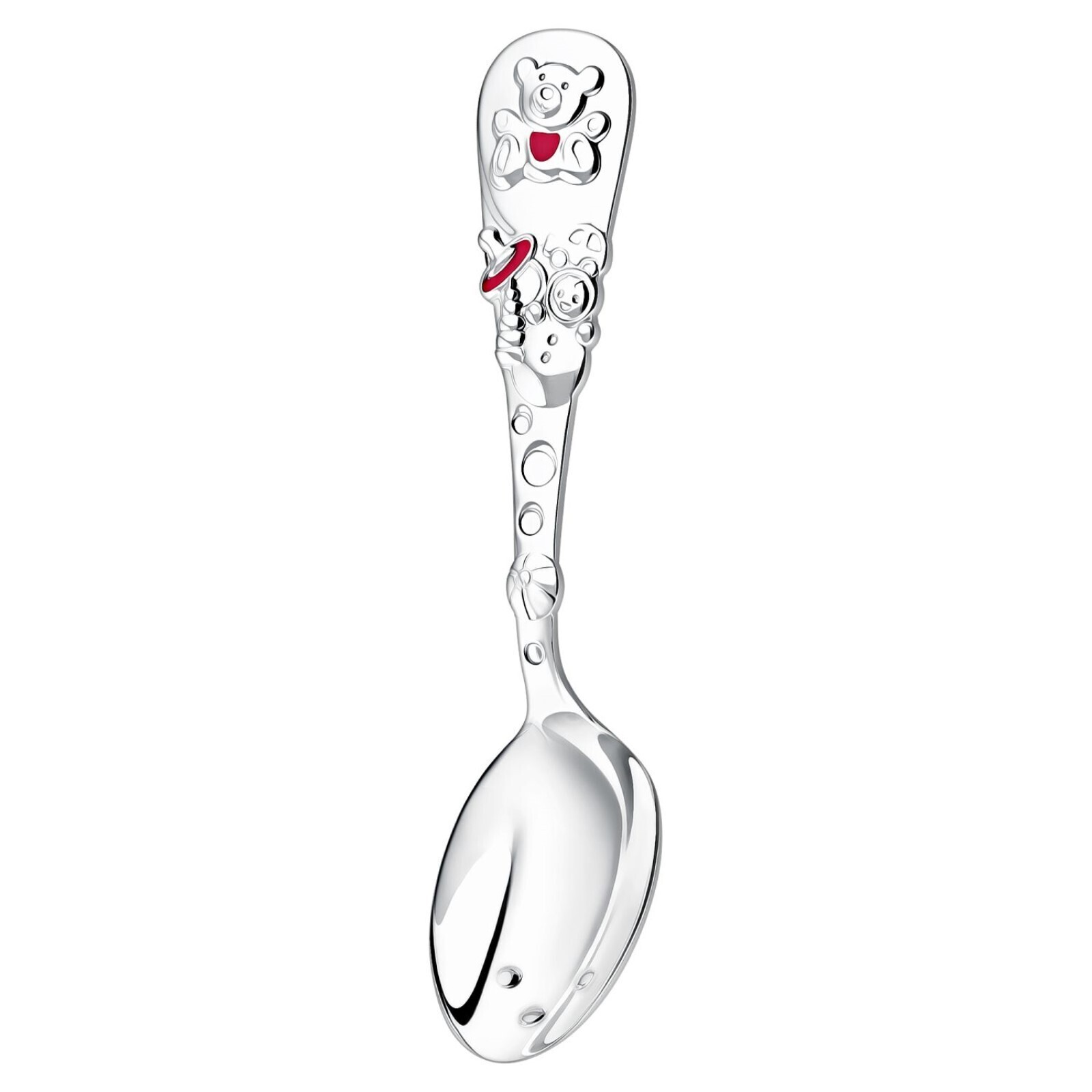 Набор столовых приборов «Мишка» для детей, в футляре, посеребренный, 2 шт: ложка, вилка, розовая эм